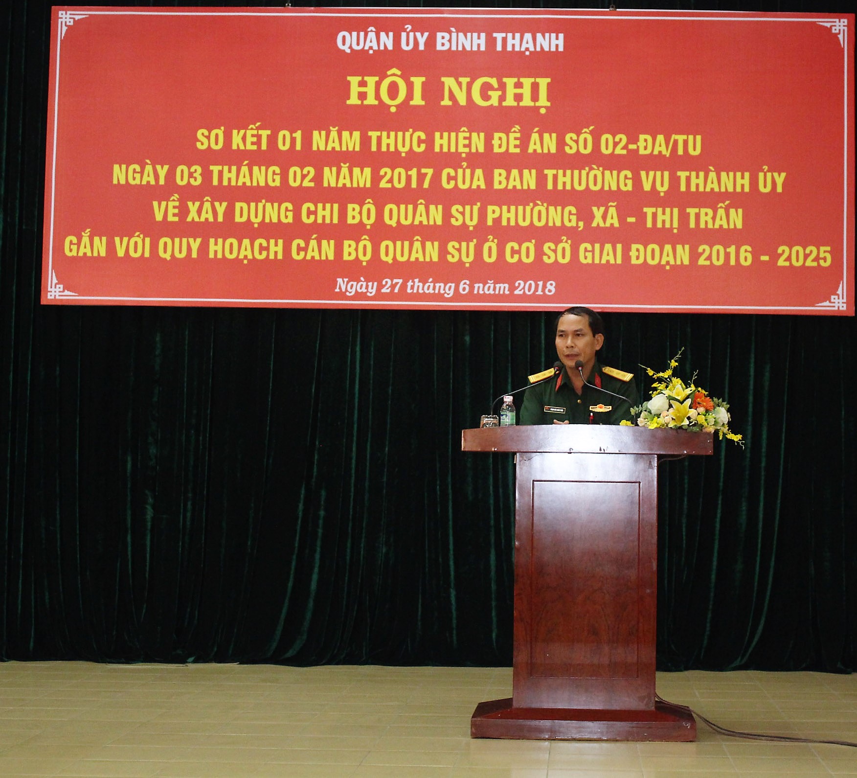 Thượng tá Phạm Đức Châu Trần, Chỉ huy trưởng Ban CHQS Quận Bình Thạnh phát biểu ý kiến.