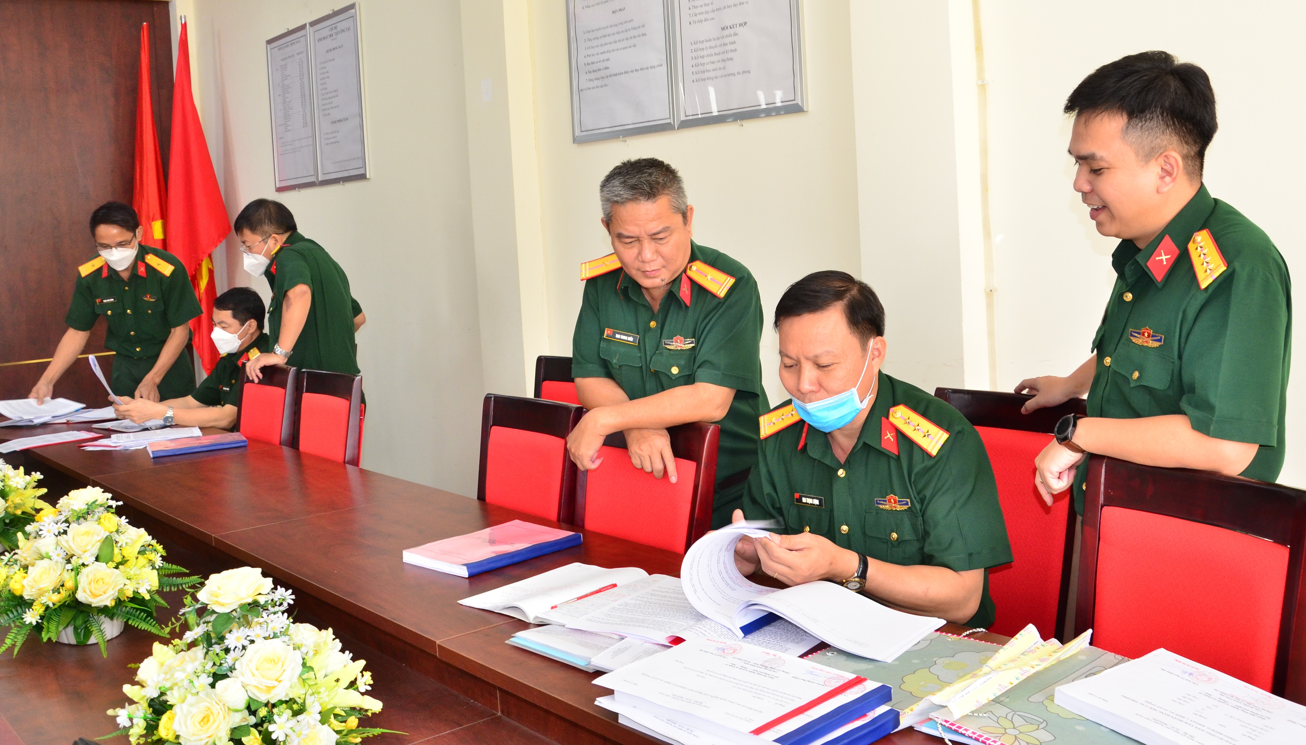 Đại tá Nguyễn Công Anh, Phó Chủ nhiệm Chính trị Quân khu, Trưởng đoàn kiểm tra, kiểm tra tại Ban CHQS phường 1, quận 10.