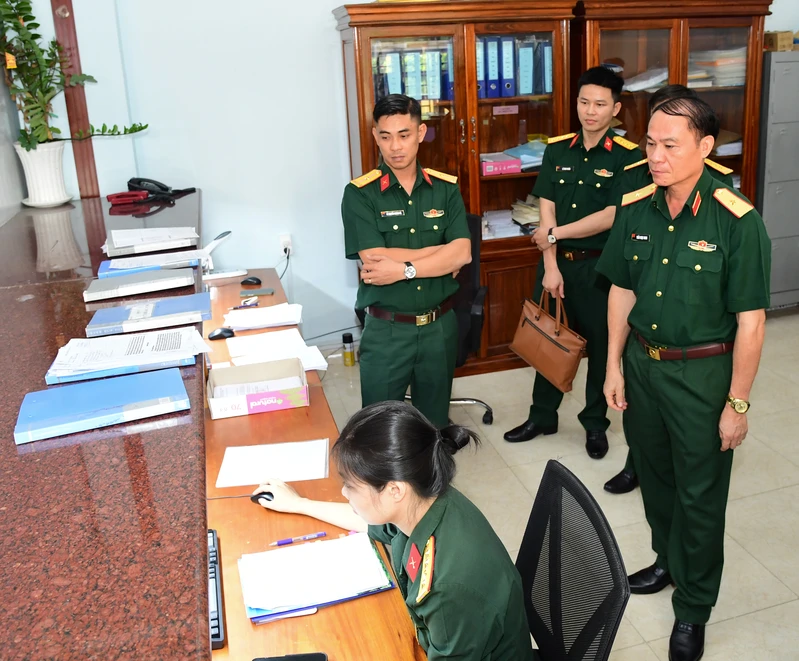 Thiếu tướng Trần Ngọc Minh, Phó Tư lệnh Quân khu 7 kiểm tra cán bộ, nhân viên văn thư xử lý số hóa tài liệu.