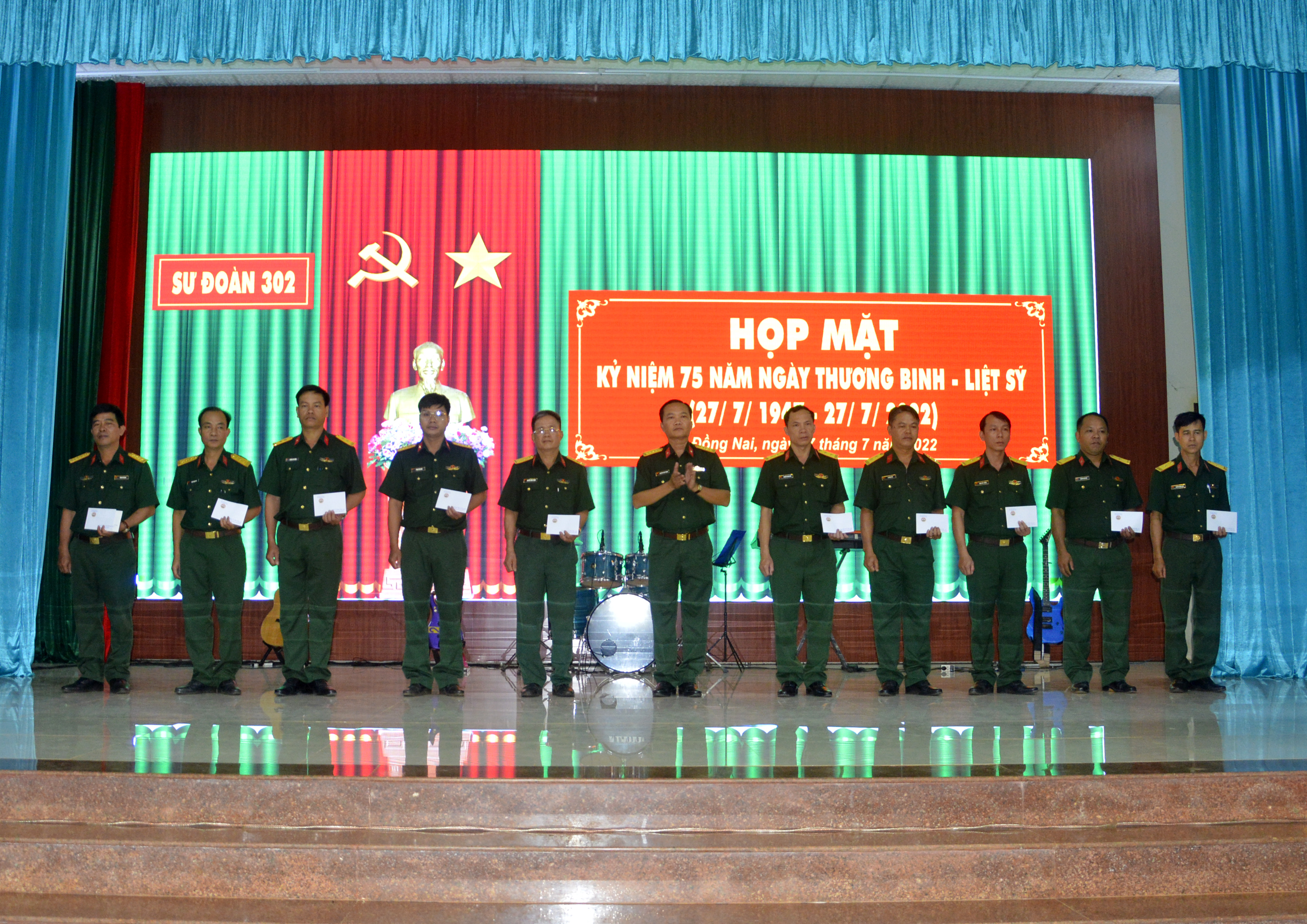 (QK7 Online) - Ngày 27-7, Sư đoàn 302 tổ chức họp mặt kỷ niệm 75 năm Ngày Thương binh - Liệt sĩ (27/7/1947-27/7/2022). Dự buổi họp mặt có các đồng chí trong Đảng ủy, chỉ huy sư đoàn; thủ trưởng các cơ quan sư đoàn cùng các đồng chí sĩ quan, quân nhân chuyên nghiệp, viên chức quốc phòng, hạ sĩ quan, binh sĩ là con thương binh, bệnh binh đang công tác tại sư đoàn.