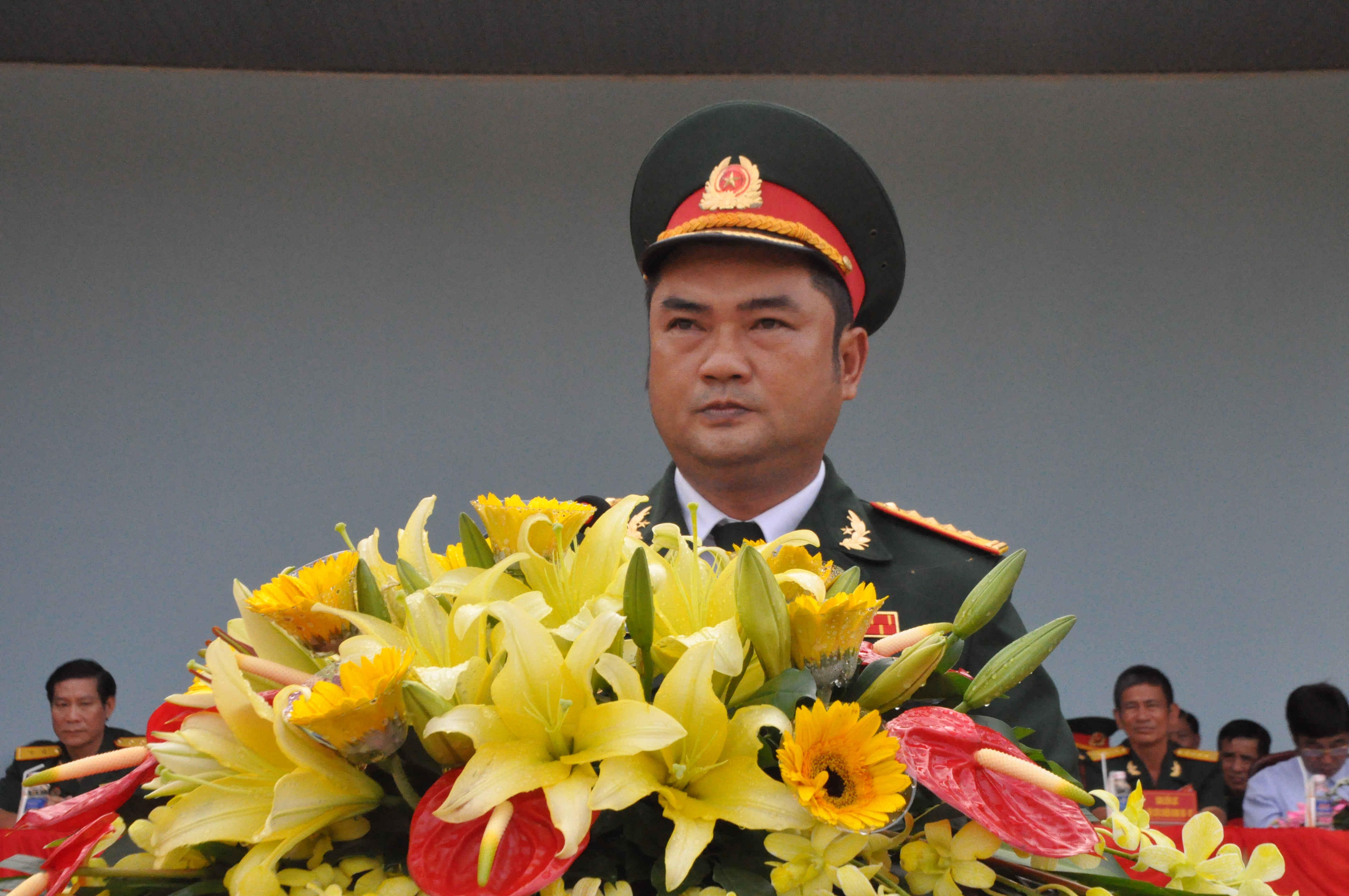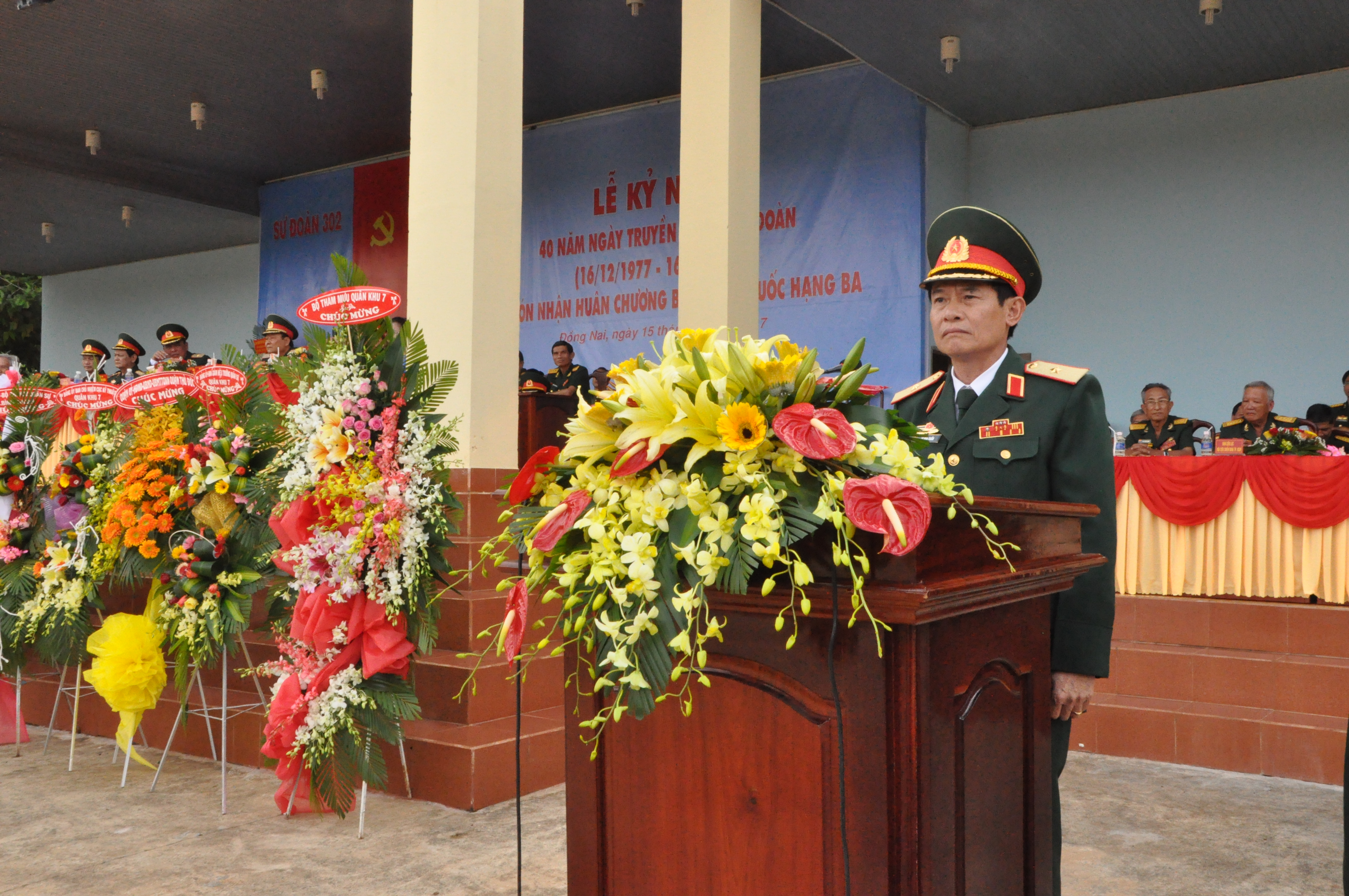 Đại tá Lê Xuân Thế, Sư đoàn trưởng phát biểu ôn lại truyền thống 40 năm của đơn vị