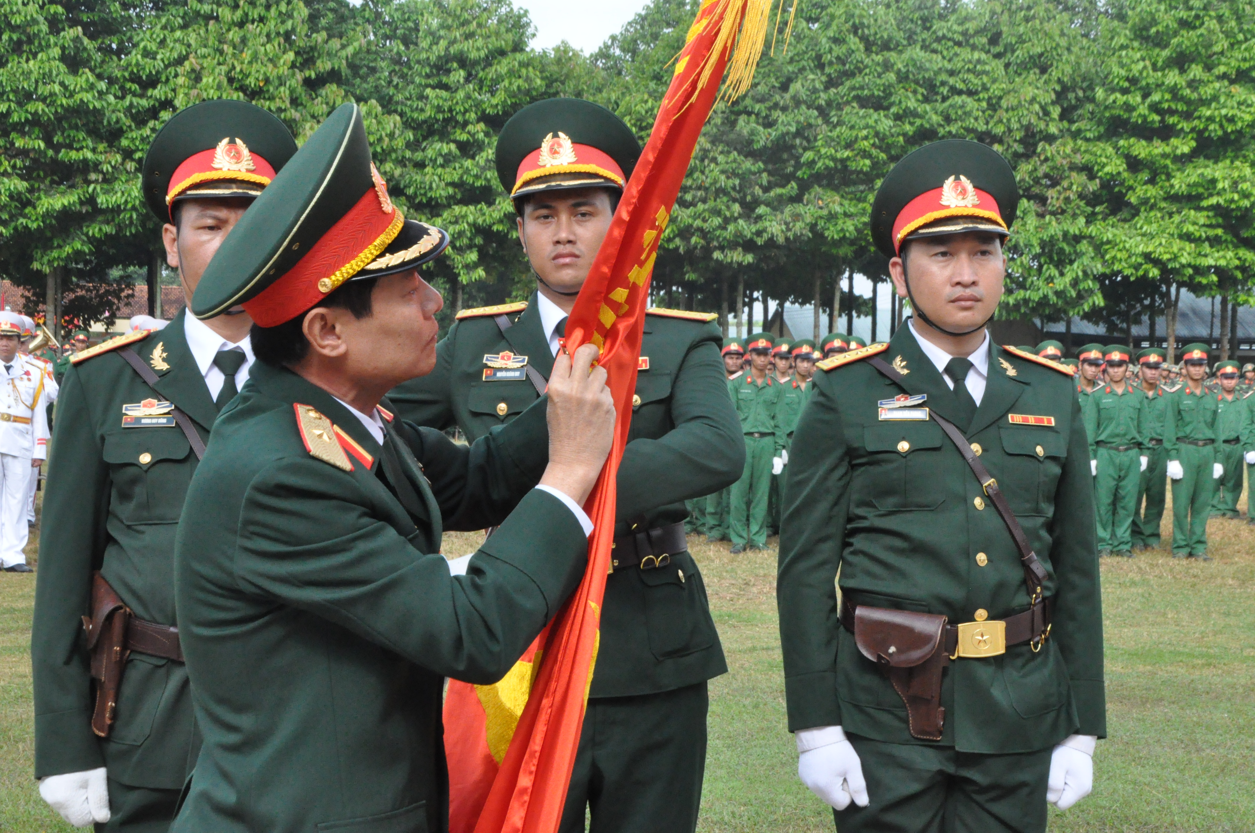 Thiếu tướng Lê Bửu Tuấn, Phó Tư lệnh, Tham mưu trưởng Quân khu 7 gắn Huân chương Bảo vệ Tổ quốc hạng Ba lên Quân kỳ quyết thắng của đơn vị
