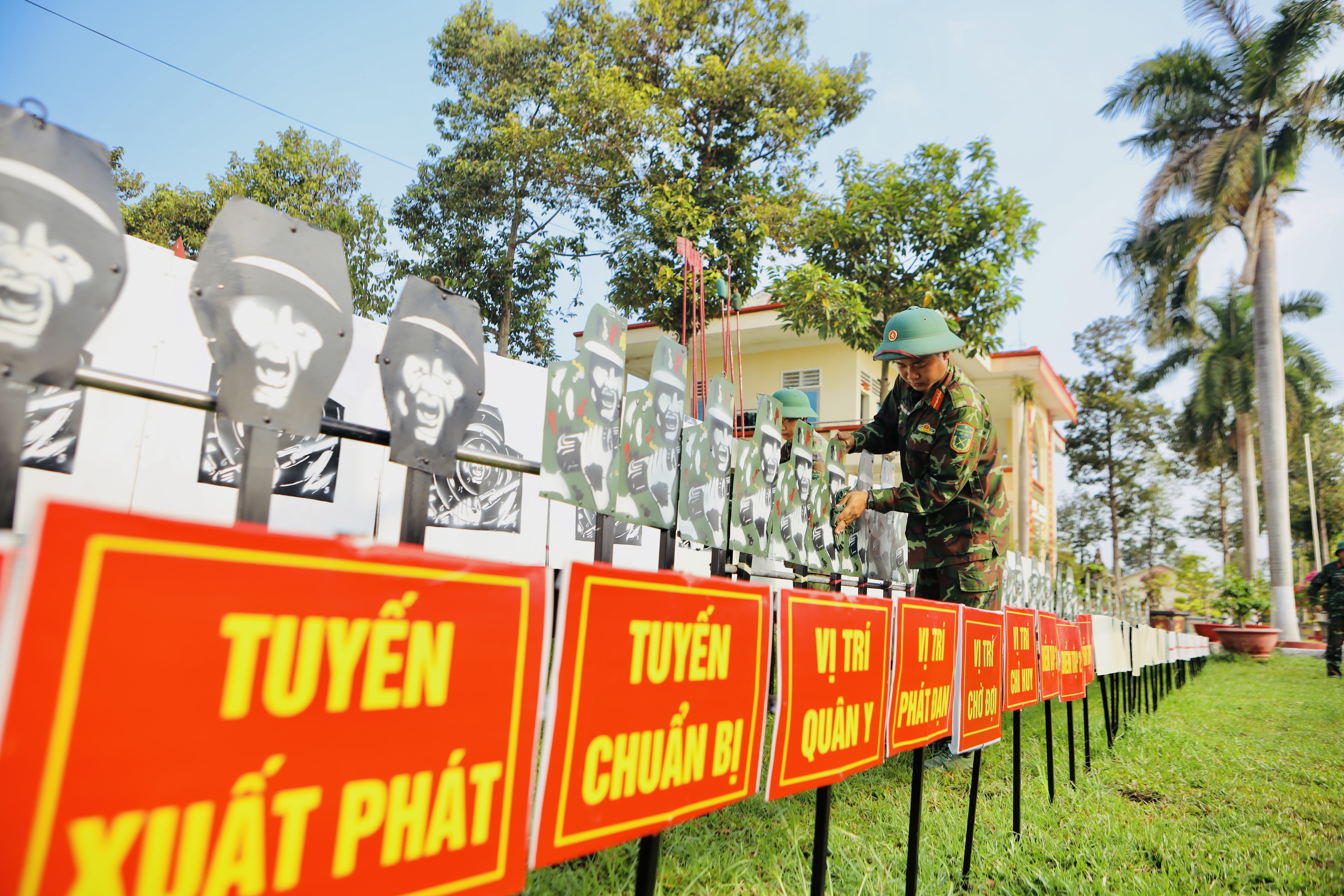 Hệ thống bia, biển, bảng tập bắn được chuẩn bị đầy đủ.