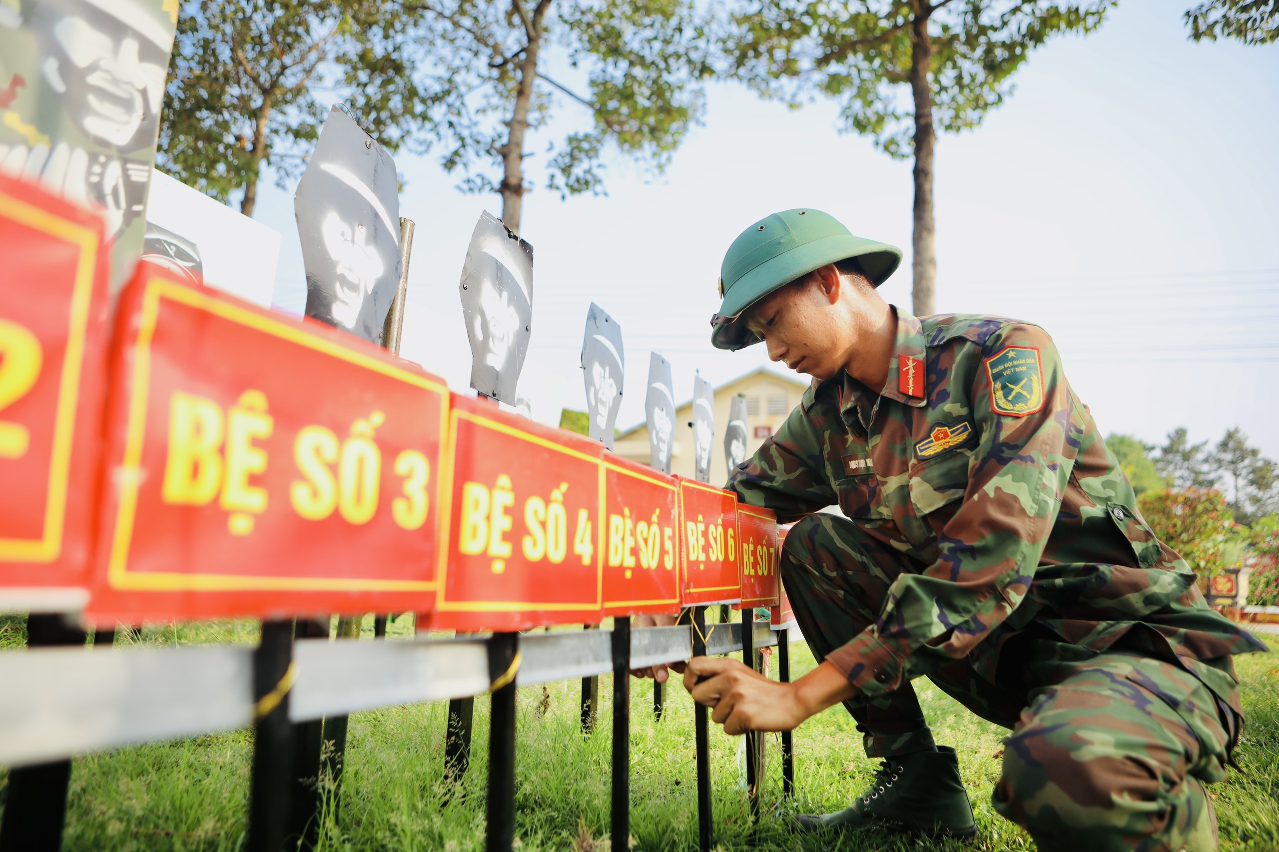 Chuẩn bị mô hình học cụ huấn luyện chiến sĩ mới.