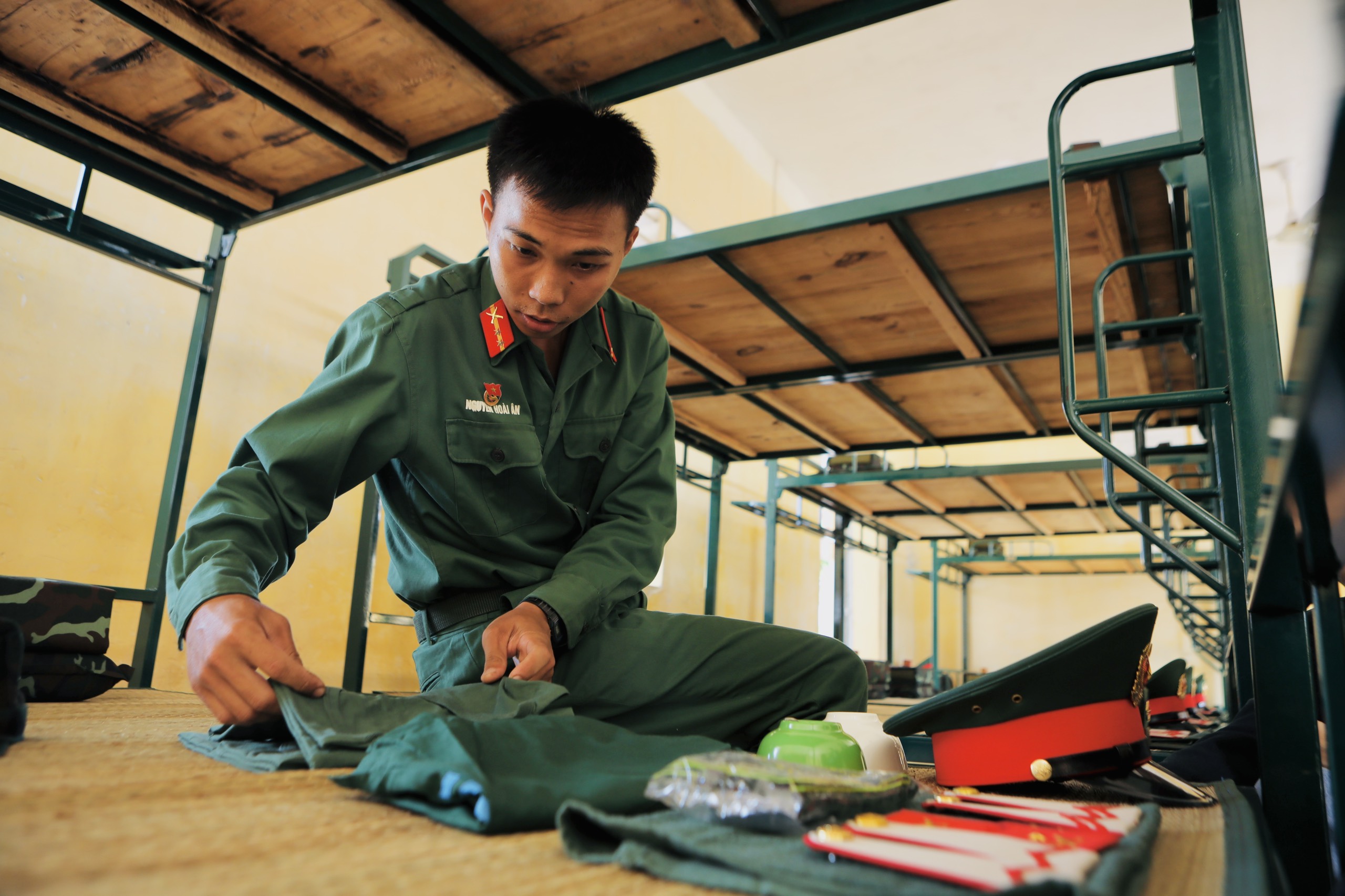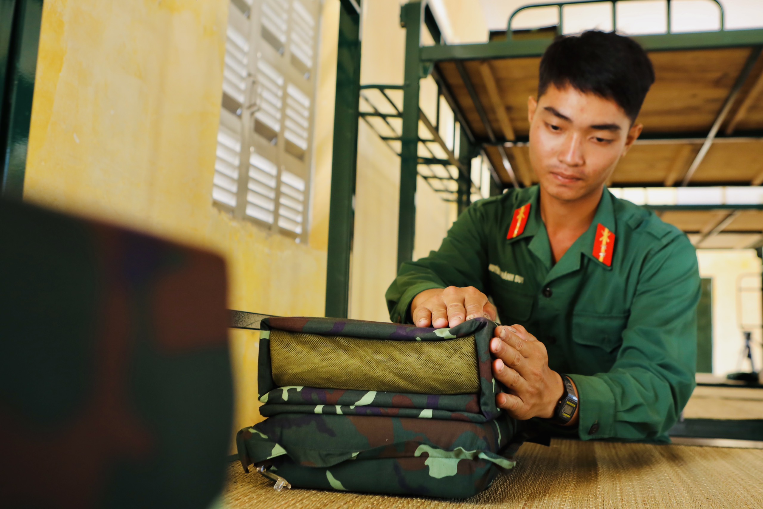 Trung tá Lê Công Danh, Trung đoàn trưởng Trung đoàn 5 kiểm tra công tác chuẩn bị huấn luyện chiến sĩ mới.