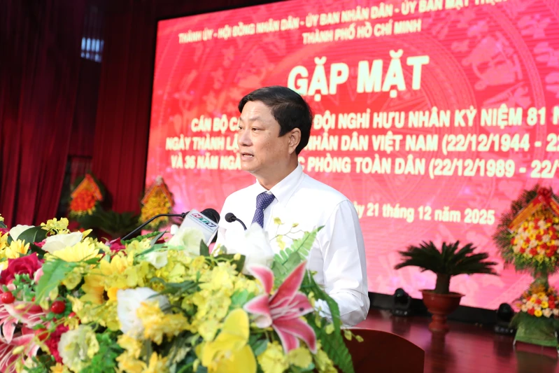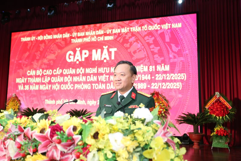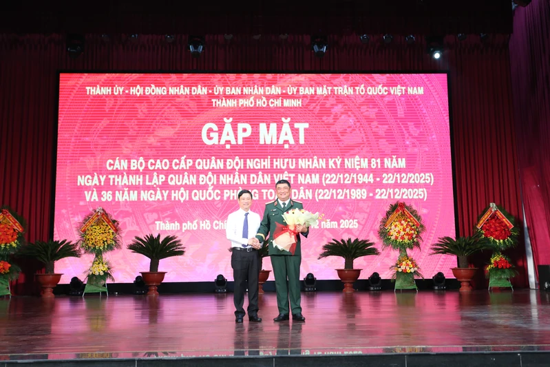 (QK7 Online) - Nhân kỷ niệm 81 năm Ngày thành lập Quân đội nhân dân Việt Nam (22/12/1944-22/12/2025) và 36 năm Ngày hội Quốc phòng toàn dân, sáng 21/12, Thành ủy, Hội đồng nhân dân, Ủy ban nhân dân, Ủy ban Mặt trận Tổ quốc Việt Nam Thành phố Hồ Chí Minh tổ chức gặp mặt các cán bộ cao cấp quân đội đã nghỉ hưu trên địa bàn.
