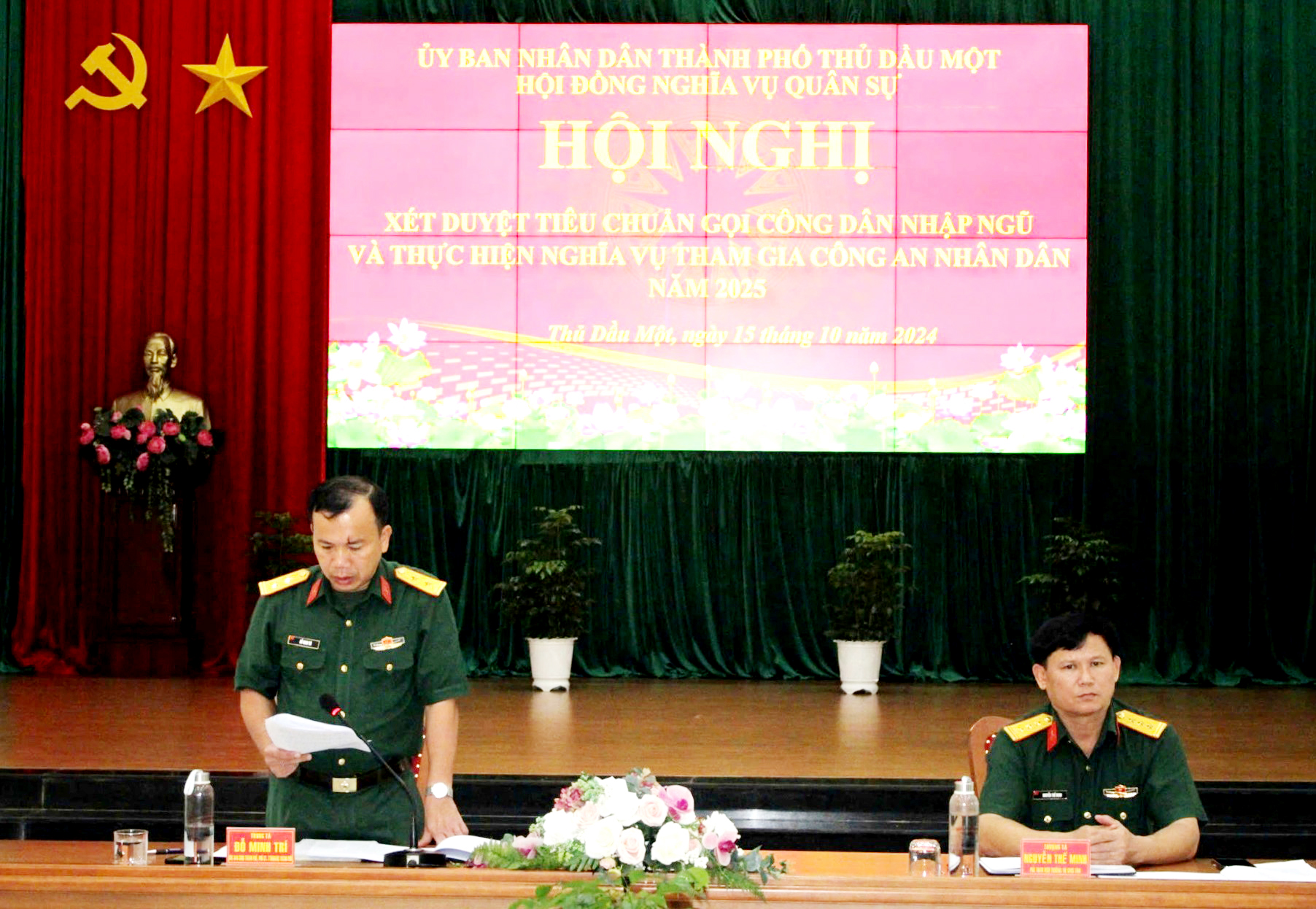 (QK7 Online) - Từ ngày 15 đến 17/10, Hội đồng Nghĩa vụ quân sự thành phố Thủ Dầu Một, tỉnh Bình Dương tổ chức Hội nghị xét duyệt chính trị, chính sách nam công dân sẵn sàng thực hiện nghĩa vụ quân sự và nghĩa vụ Công an Nhân dân năm 2025.