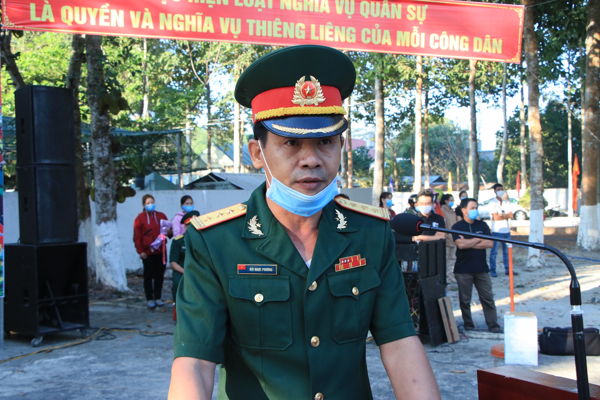 Thiếu tướng Đặng Văn Hùng (bìa trái) dự lễ giao nhận quân tại huyện Chơn Thành.