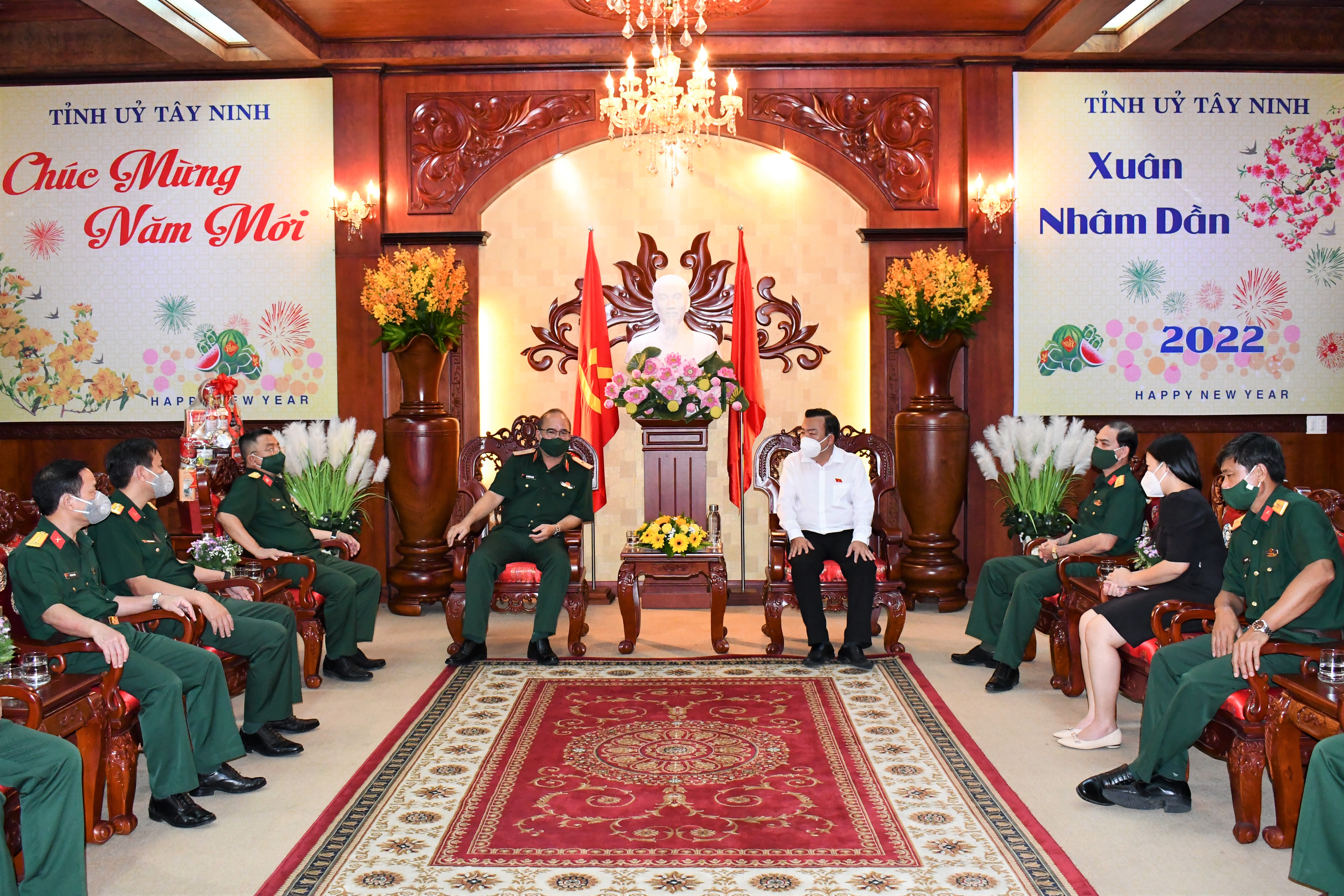 Thiếu tướng Du Trường Giang, Phó Tư lệnh Quân khu 7 và đoàn công tác Quân khu chúc Tết lãnh đạo Tỉnh uỷ Tây Ninh.