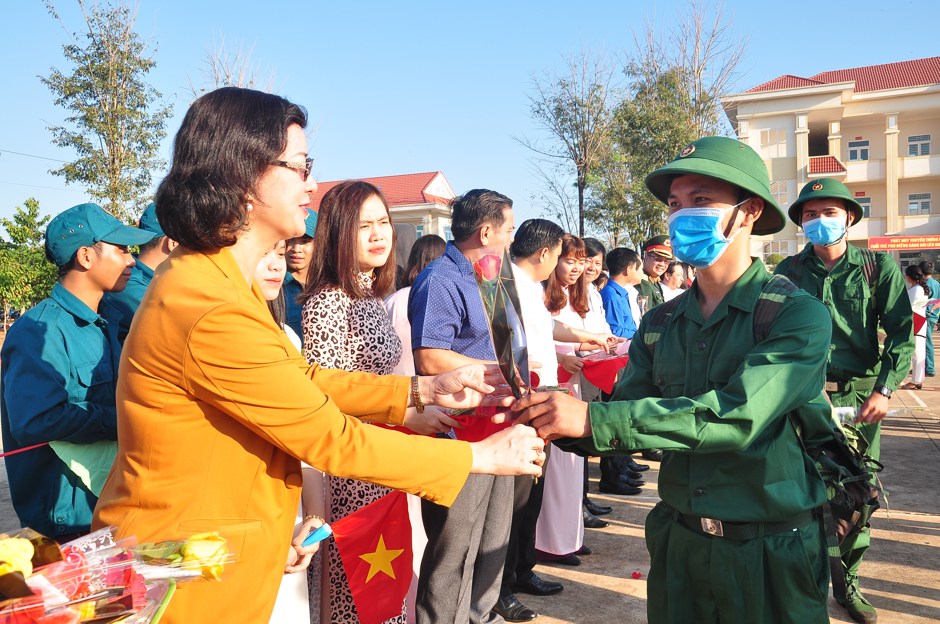 Lãnh đạo tỉnh Bình Phước tặng hoa động viên thanh niên huyện Phú Riềng.