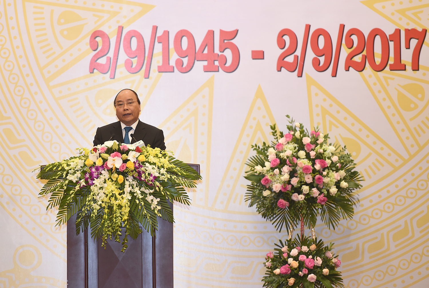 Thay mặt Lãnh đạo Đảng, Nhà nước và nhân dân Việt Nam, nhiệt liệt chào mừng các vị khách quý - những người bạn thân thiết đã tới dự tiệc chiêu đãi kỷ niệm 72 năm Quốc khánh, Thủ tướng nhấn mạnh: “Chúng tôi tự hào đã đạt được những thành tựu to lớn, có ý nghĩa lịch sử và trong ánh mắt của đối tác, bạn bè quốc tế, Việt Nam luôn là người bạn, đối tác tin cậy”.