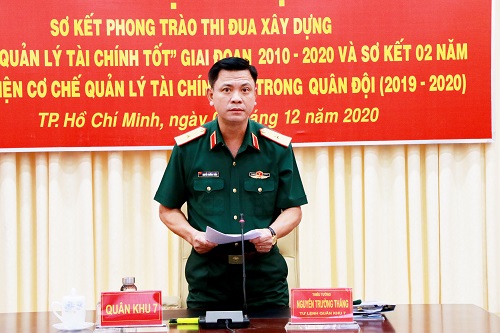 Phát biểu tại hội nghị, Thiếu tướng Nguyễn Trường Thắng, Tư lệnh Quân khu cho rằng, qua 2 năm thực hiện đổi mới cơ chế quản lý tài chính, Quân khu 7 đã đạt được những kết quả tích cực trong công tác lập, phân bổ, cấp phát, thanh quyết toán ngân sách. Đề án đã khắc phục tình trạng ngân sách cho các nghiệp vụ, cấp trên phân bổ cho đơn vị. Phát huy tính chủ động, trách nhiệm của lãnh đạo, chỉ huy, cơ quan tài chính của đơn vị thụ hưởng ngân sách, chấm dứt việc giữ lại ngân sách chờ phân bổ của cơ quan cấp trên, dễ nảy sinh cơ chế xin, cho. Xác định rõ trách nhiệm của chủ tài khoản và cơ quan tài chính khi cấp phát, thanh quyết toán kinh phí; xóa bỏ việc cơ quan cấp trên mua hàng hóa, cấp hiện vật cho cấp dưới.