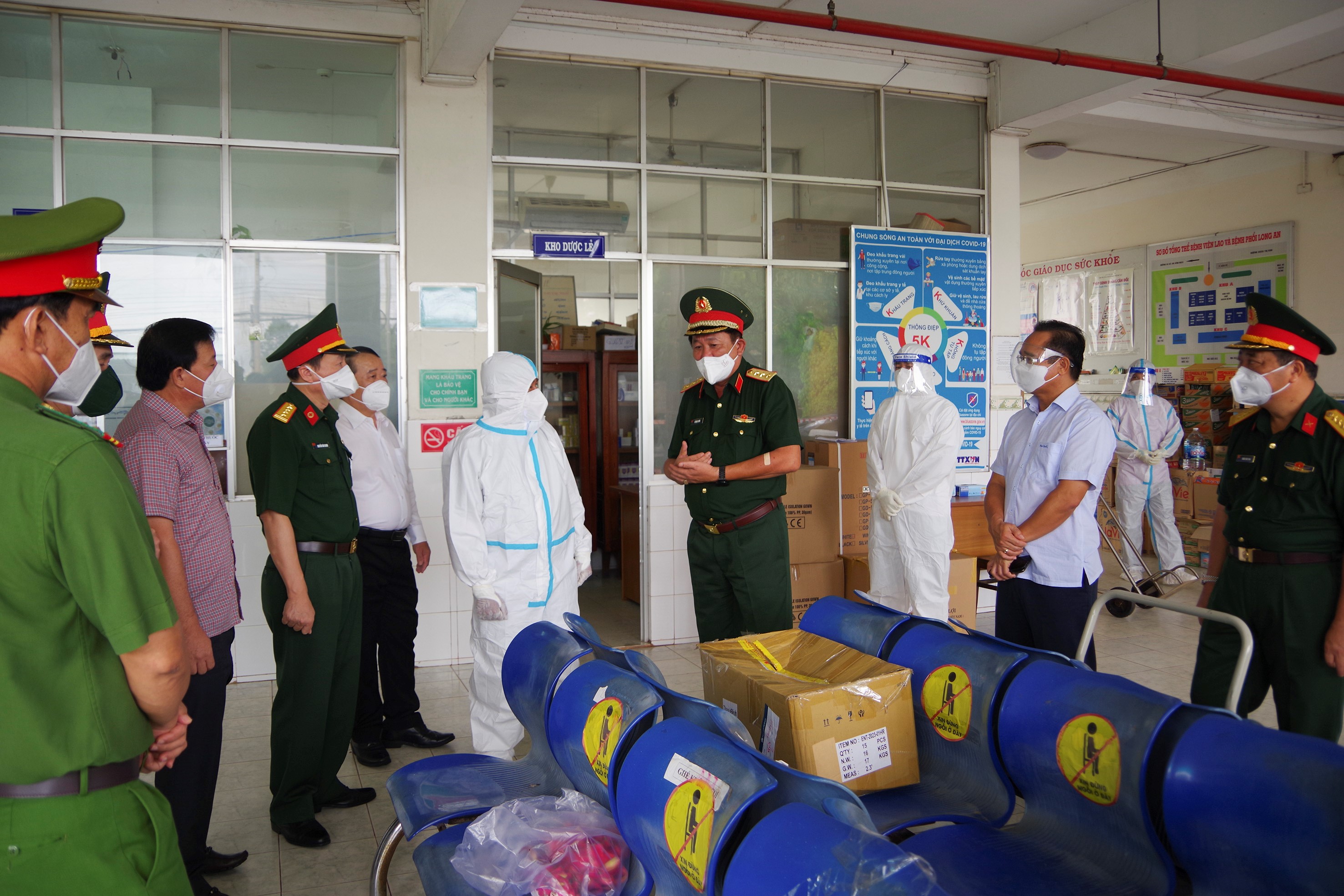 Đoàn công tác kiểm tra thực tế tại Bệnh viện dã chiến số 9 tại Trường Chính trị tỉnh, Bệnh viện dã chiến số 1 tại Bệnh viện Phổi và Bệnh viện cấp cứu hồi sức COVID tại Nhà khách Tổng liên đoàn Lao động tỉnh Long An. Tại mỗi nơi đến, đồng chí Thứ trưởng Bộ Quốc phòng lắng nghe ý kiến của đội ngũ y, bác sĩ đang trực tiếp điều trị bệnh nhân covid 19. Đồng thời, đồng chí Thứ trưởng Bộ Quốc phòng chia sẻ những khó khăn và động viên đội ngũ y, bác sĩ phát huy tinh thần trách nhiệm, tận tình, chu đáo chăm sóc các bệnh nhân bị nhiễm covid 19.