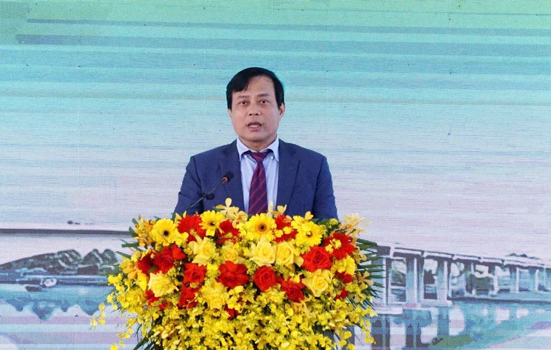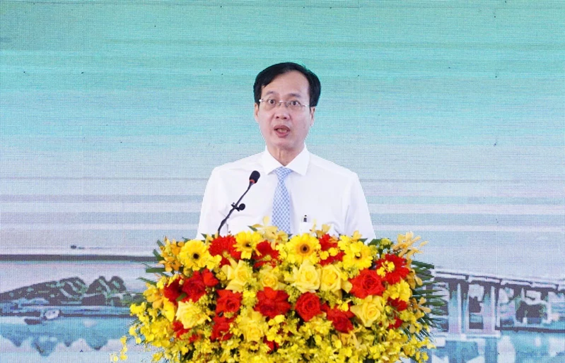 Chủ tịch UBND tỉnh Vĩnh Long Trần Trí Quang phát biểu tại lễ khởi công cầu Đình Khao.