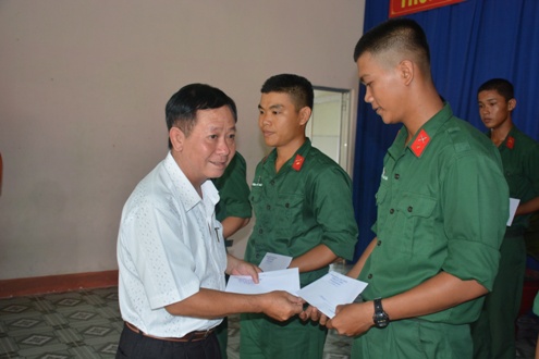 Ông Nguyễn Thanh Lam, Phó Chủ tịch UBND huyện Châu Thành tặng quà cho chiến sĩ