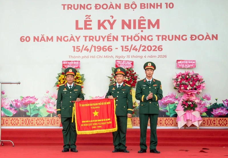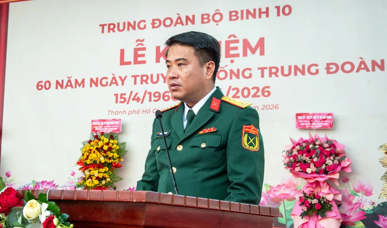 (QK7 Online) – Sáng 15 tháng 4, Trung đoàn bộ binh 10, Bộ Tư lệnh Thành phố Hồ Chí Minh tổ chức lễ kỷ niệm 60 năm ngày truyền thống Trung đoàn (15/4/1966 – 15/4/2026). Đại tá Nguyễn Tấn Linh, Đảng ủy viên Quân khu, Phó Tư lệnh Quân khu dự và phát biểu chỉ đạo.