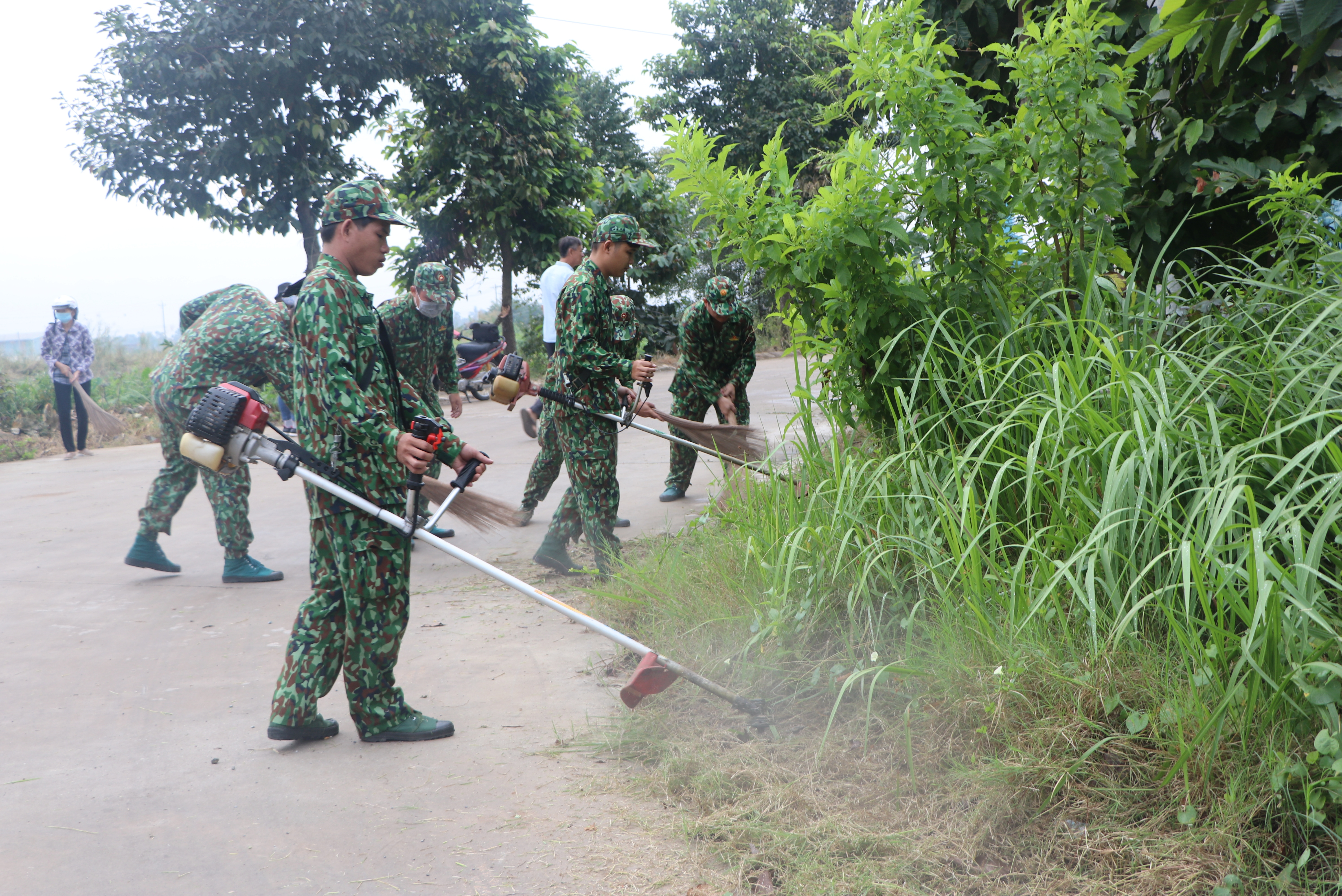 Cán bộ, chiến sĩ Trường Quân sự Quân khu dọn vệ sinh, phát quang các tuyến đường giao thông trên địa bàn.