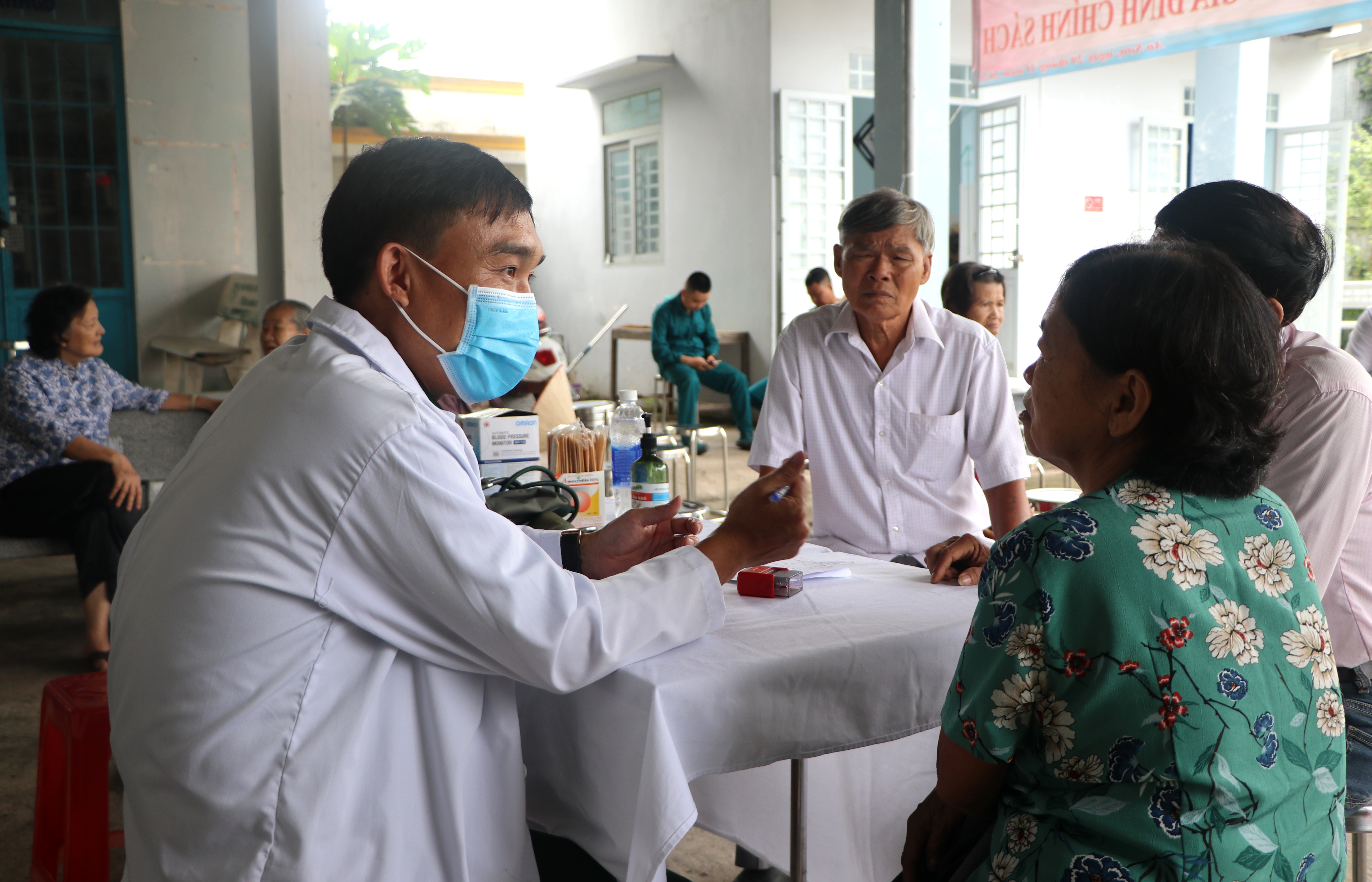 Tổ Quân y khám bệnh, tư vấn chăm sóc sức khỏe bà con Nhân dân xã An Sơn.