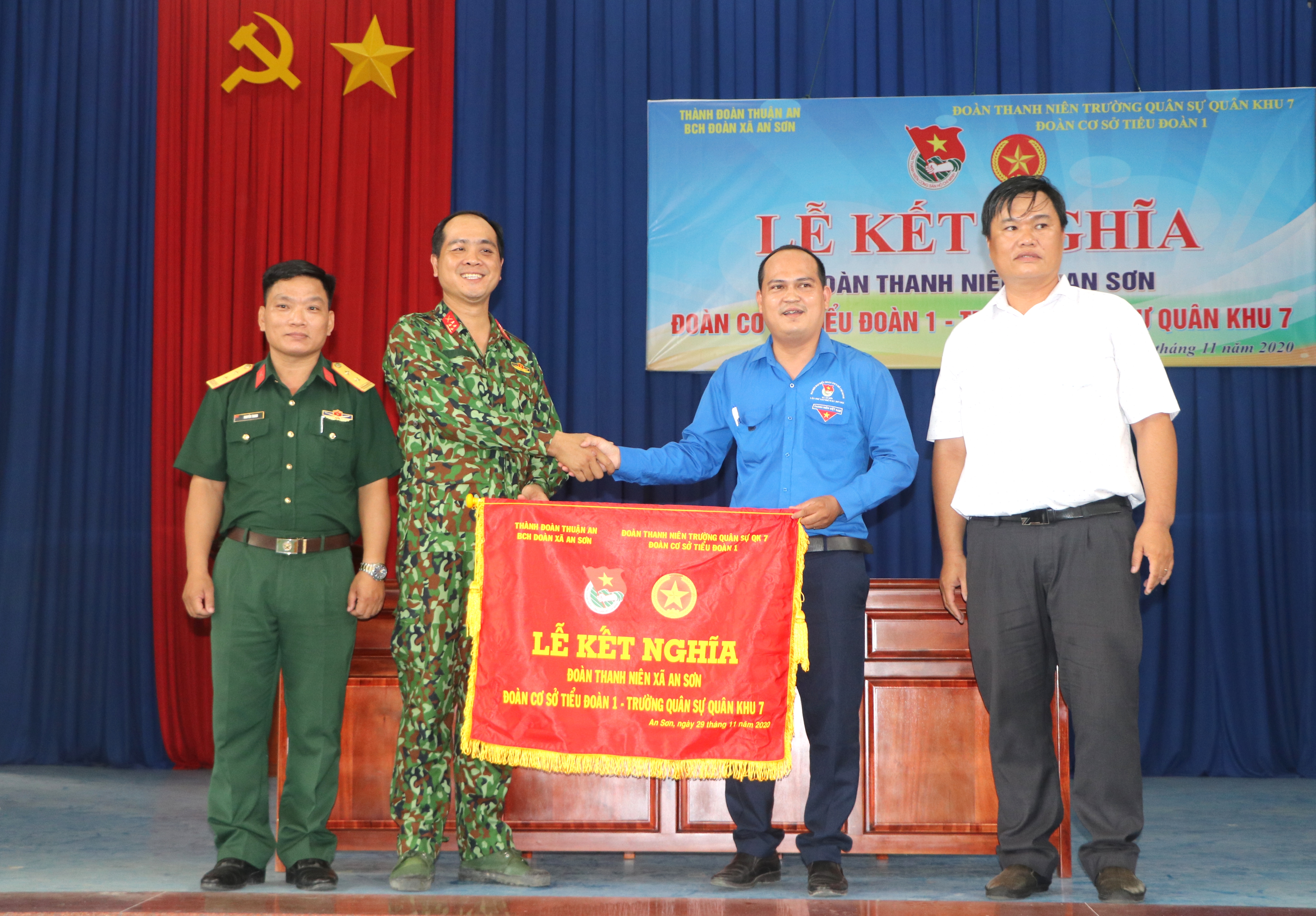 Lễ kết nghĩa giữa Đoàn cơ sở Tiểu đoàn 1, Trường Quân sự Quân khu và xã Đoàn An Sơn.