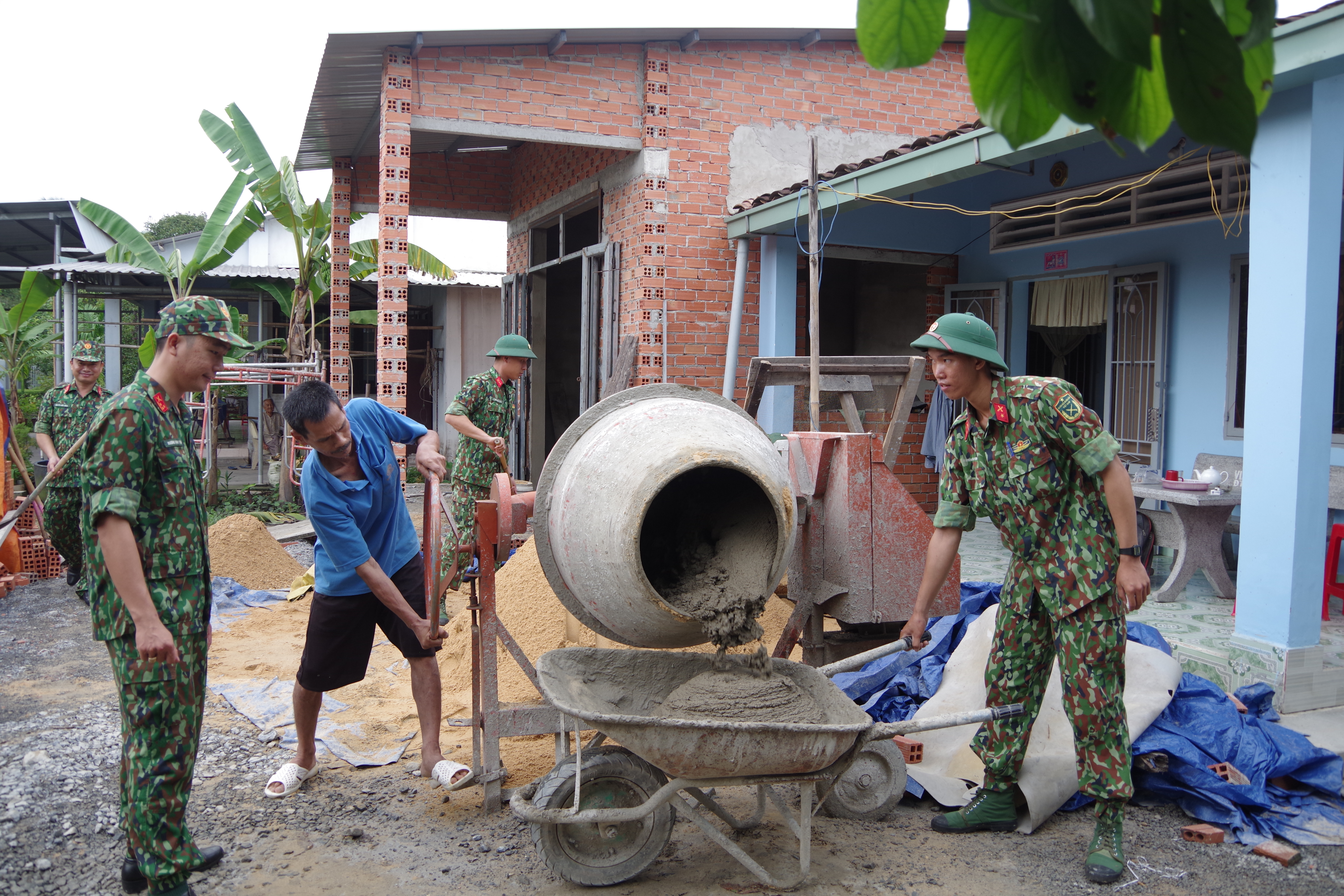 Cán bộ, chiến sĩ Trường Quân sự Quân khu đóng góp ngày công xây dựng nhà tình nghĩa quân dân