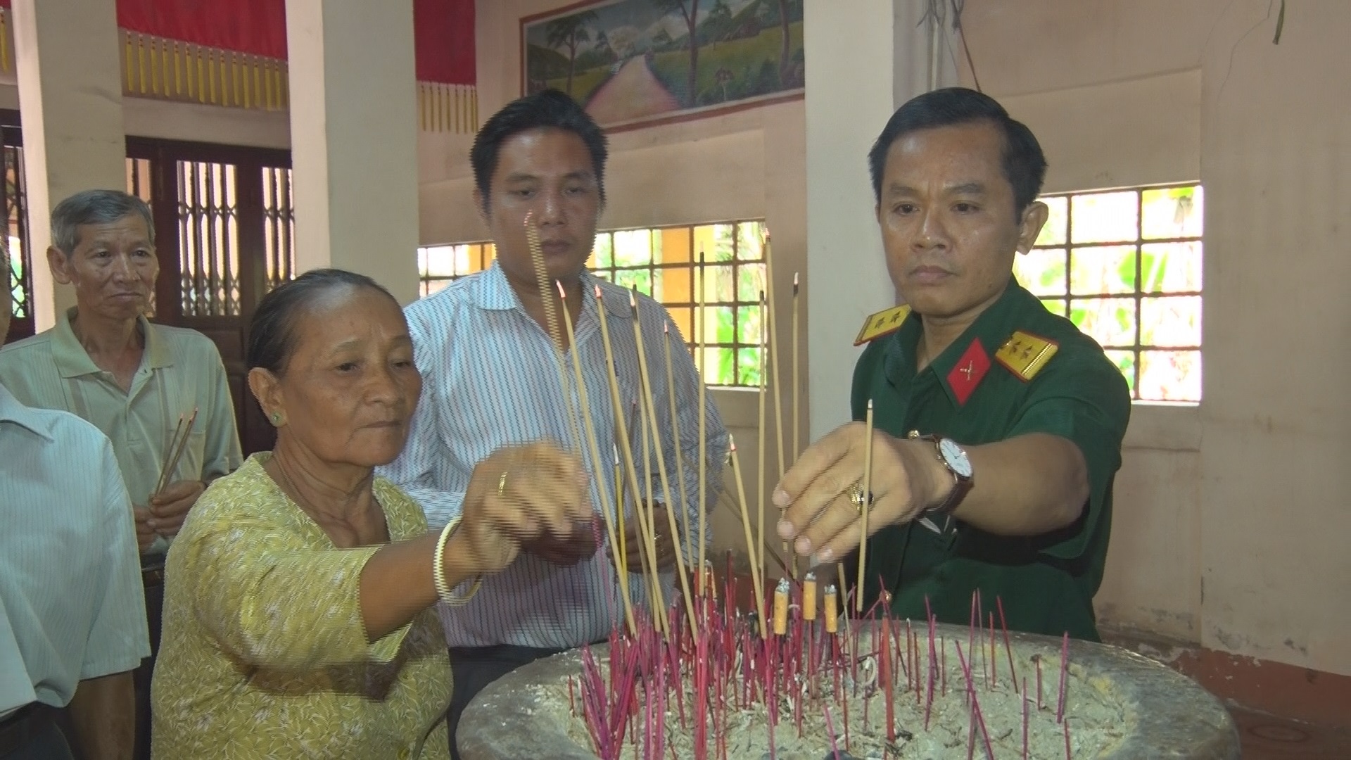Cán bộ nhà trường và địa phương thắp hương tại Đền An Sơn, xã An Sơn, T.p Thuận An, Bình Dương.