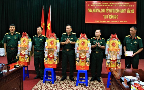 Thăm và chúc tết tại Sư đoàn 5, Sư đoàn 317 – Quân khu 7, đồng chí Tư lệnh Quân khu biểu dương tinh thần trách nhiệm, sự chủ động trong công tác chuẩn bị trực sẵn sàng chiến đấu trước, trong và sau tết, bảo đảm vật chất, chế độ, tinh thần cho bộ đội và tặng quà các gia đình nghèo, gia đình chính sách trên địa bàn đơn vị đứng chân; xây dựng chương trình, tổ chức chặt chẽ các hoạt động vui xuân, đón tết cổ truyền dân tộc vui tươi, ý nghĩa, đặc biệt là Sư đoàn 317 đã làm rất tốt việc xây dựng cảnh quan môi trường, khuôn viên doanh trại thoáng, xanh, sạch, đẹp, đầy sức sống của mùa xuân, chủ động về hoa tết, không phải mua ngoài thị trường…