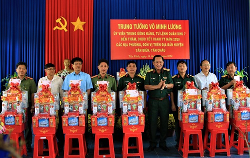 Trước đó, Trung tướng Võ Minh Lương, Tư lệnh Quân khu 7 đã đến thăm, tặng quà, chúc tết các địa phương, đơn vị bộ đội, công an, biên phòng, các trạm, chốt dân quân thuộc các huyện Châu Thành, Trảng Bàng, Bến Cầu, Tân Châu, Tân Biên. Đồng chí Tư lệnh Quân khu mong muốn các địa phương tiếp tục quan tâm đến các tuyến biên giới, xây dựng vùng biên ngày càng phát triển vững mạnh, từng bước tháo gỡ khó khăn để có giải pháp căn cơ tạo sinh kế, việc làm ổn định và phát triển cuộc sống cho các hộ dân ở khu vực biên giới.