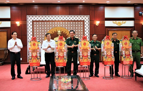 Thăm và chúc tết Tỉnh ủy, HĐND, UBND, UBMTTQ, Công an, Bộ Chỉ huy Bộ đội Biên phòng, Bộ CHQS tỉnh Tây Ninh, Trung tướng Võ Minh Lương, Tư lệnh Quân khu 7 chúc mừng thành tựu của Đảng bộ, chính quyền, nhân dân, LLVT tỉnh Tây Ninh đạt được trong năm 2019 về phát triển kinh tế, xã hội, củng cố tiềm lực quốc phòng, xây dựng khu vực phòng thủ vững chắc, giữ vững sự ổn định, trật tự an toàn xã hội, đặc biệt là thu ngân sách vượt chỉ tiêu đề ra và là địa phương đứng thứ 6 của cả nước về thu hút đầu tư.