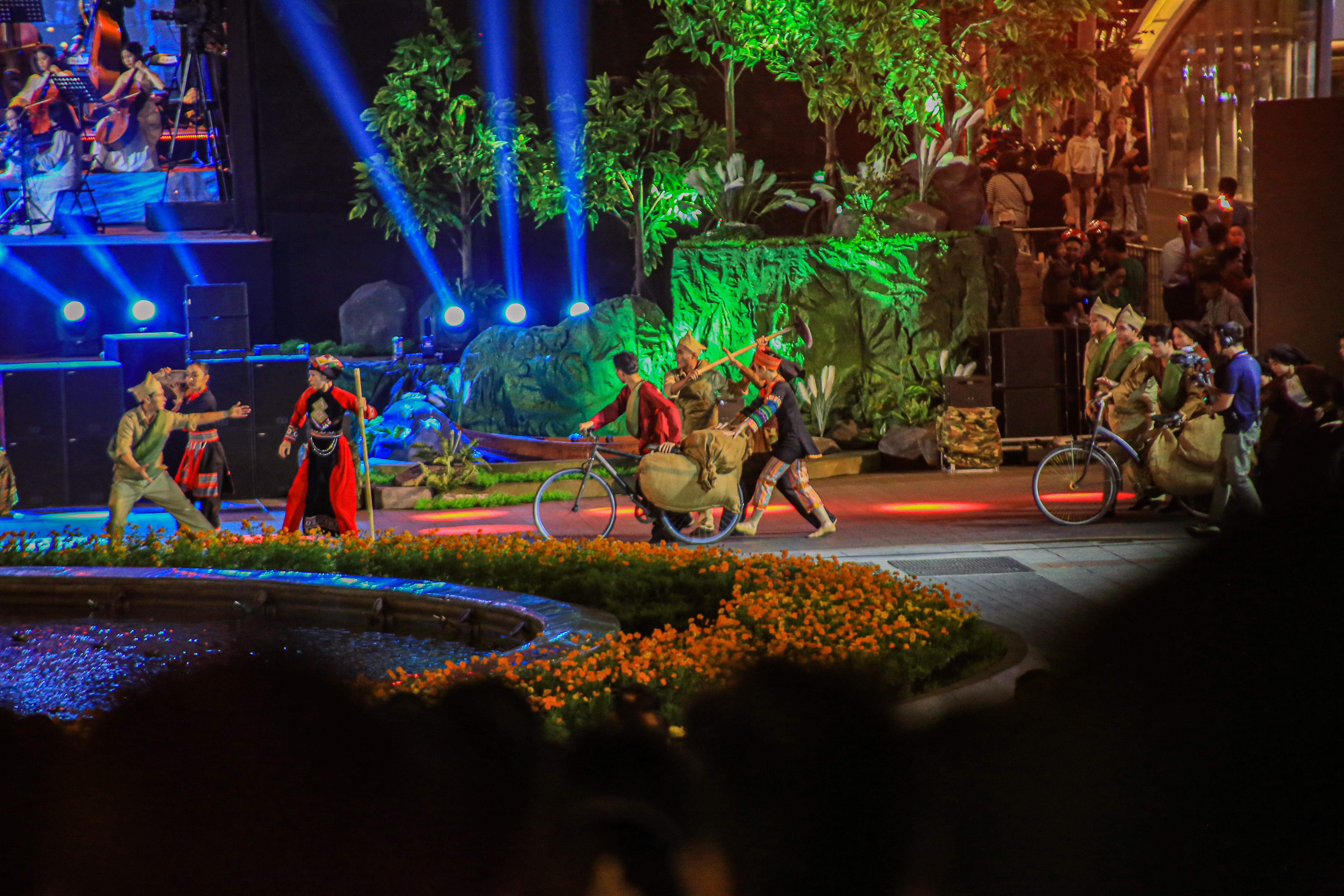 Mở đầu là nhạc cảnh “Lời thề non sông” do nhạc trưởng Lê Ha My cùng dàn nhạc giao hưởng và hợp xướng trình diễn đã tái hiện lịch sử Việt Nam từ 1858 đến 1941. Ảnh: Giản Thanh Sơn.