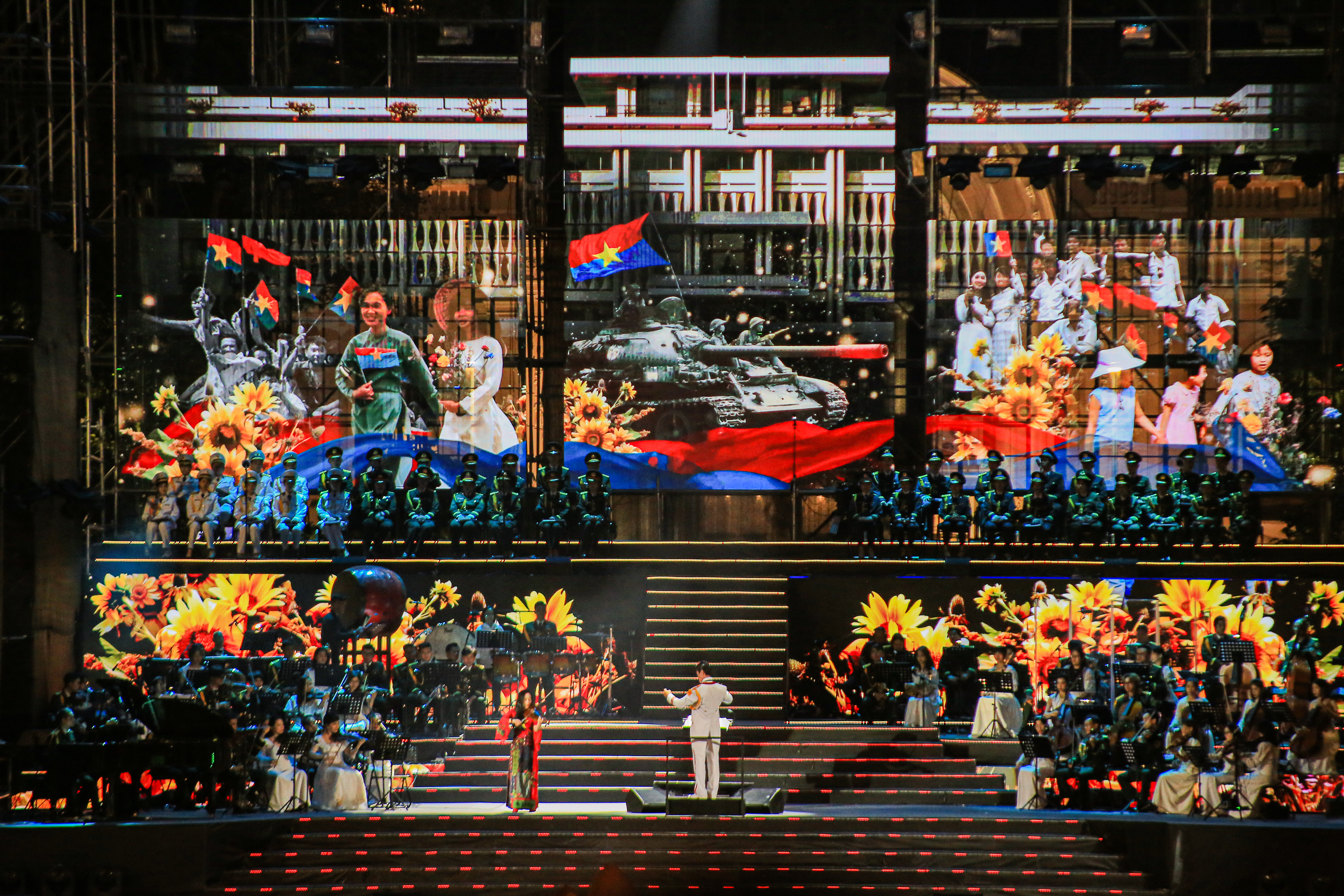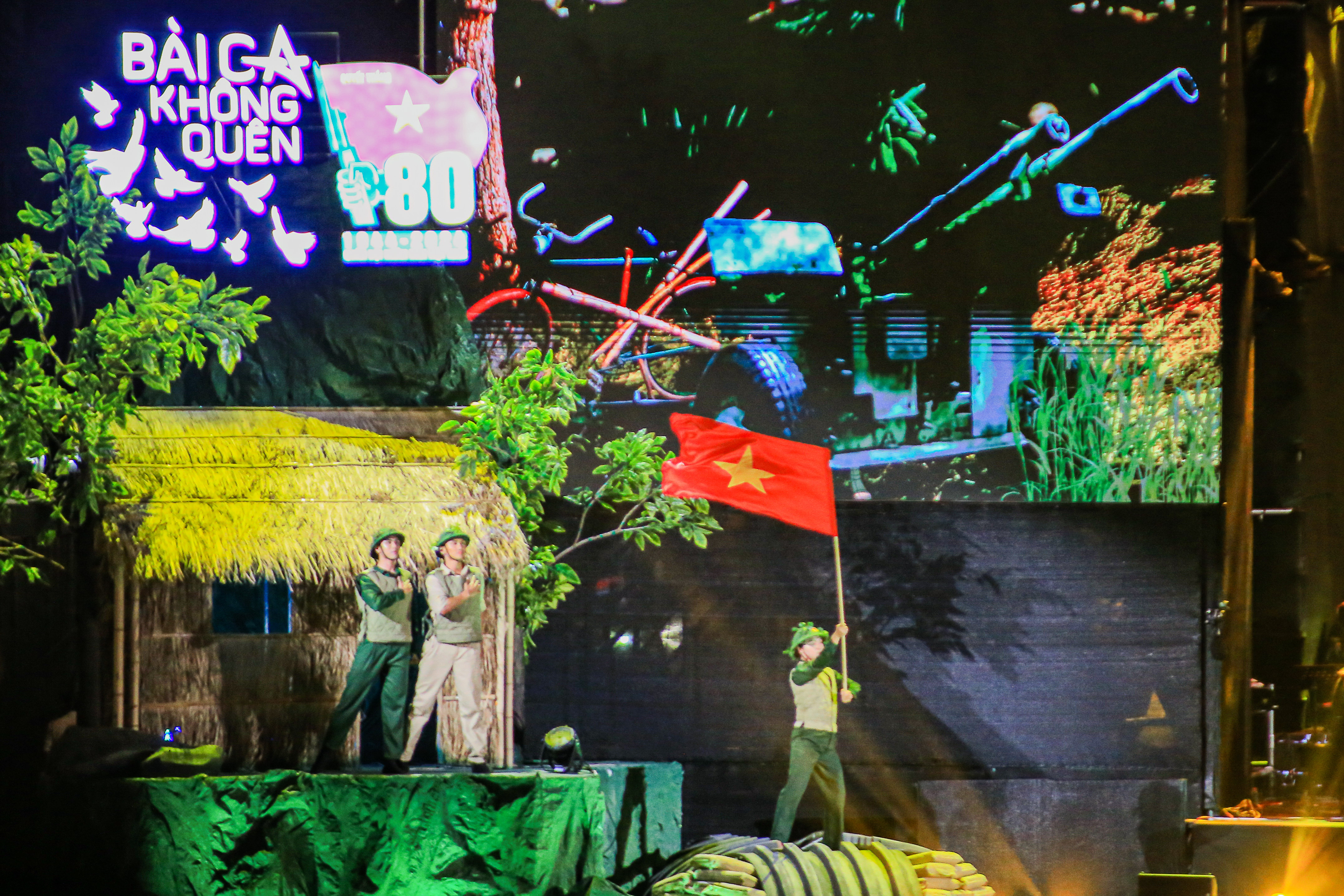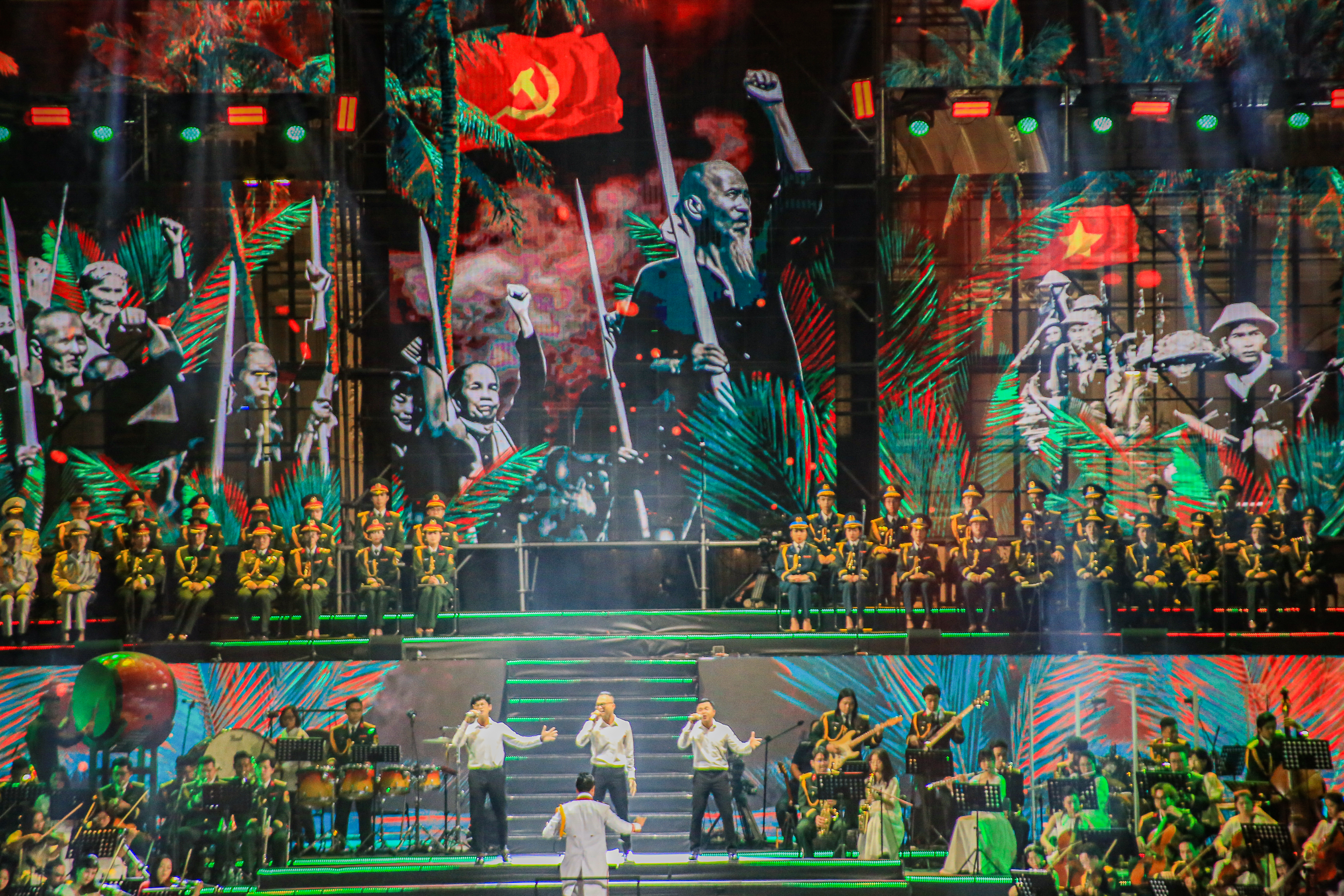 Tiếp nối, “Chiến sĩ Việt Nam” và “Đoàn Vệ quốc quân” được biểu diễn bởi nhóm ca nam 135, NSƯT Phạm Thế Vĩ, hợp xướng SG Choir và các nhóm múa, mang đến không khí hào hùng của những ngày đầu kháng chiến.