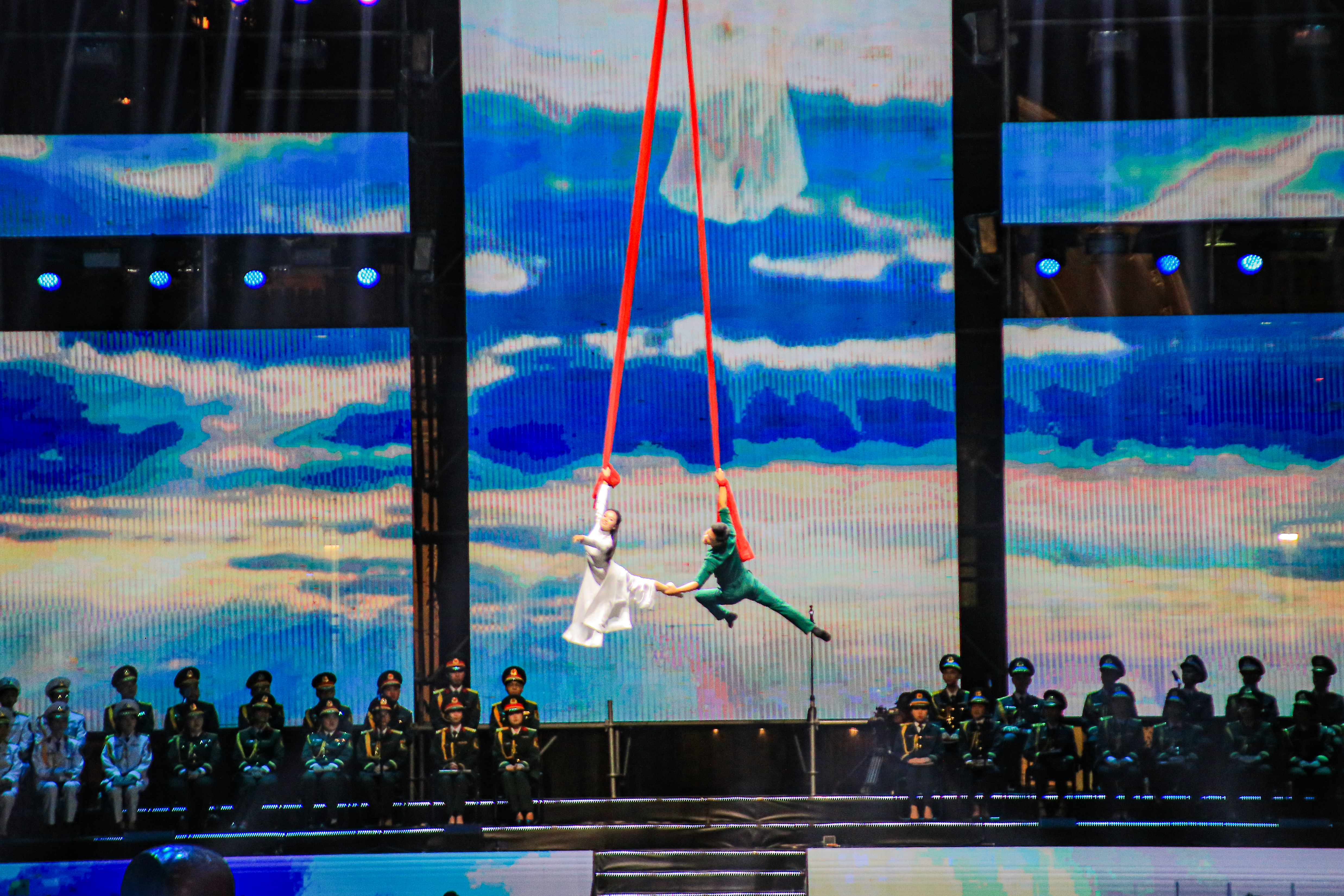 Phần kết chương trình, liên khúc “Tiến bước dưới Quân kỳ” và “Vì nhân dân quên mình” là điểm nhấn đặc biệt, kết hợp ánh sáng rực rỡ với sự góp mặt của hàng trăm nghệ sĩ, diễn viên chuyên nghiệp, chiến sĩ.