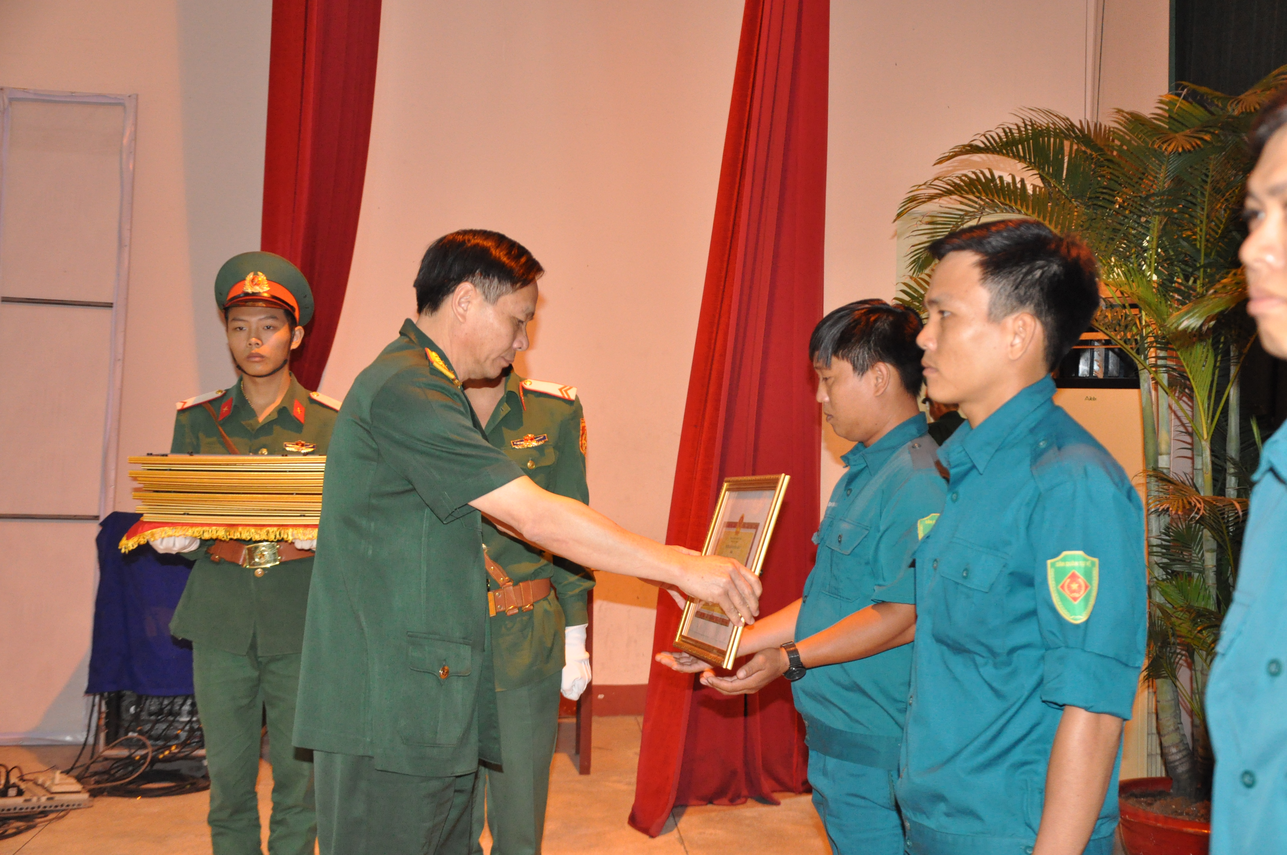 Đại tá Trương Văn Vinh, Chính ủy Trường Quân sự Quân khu 7 trao tặng bằng khen cho các học viên.