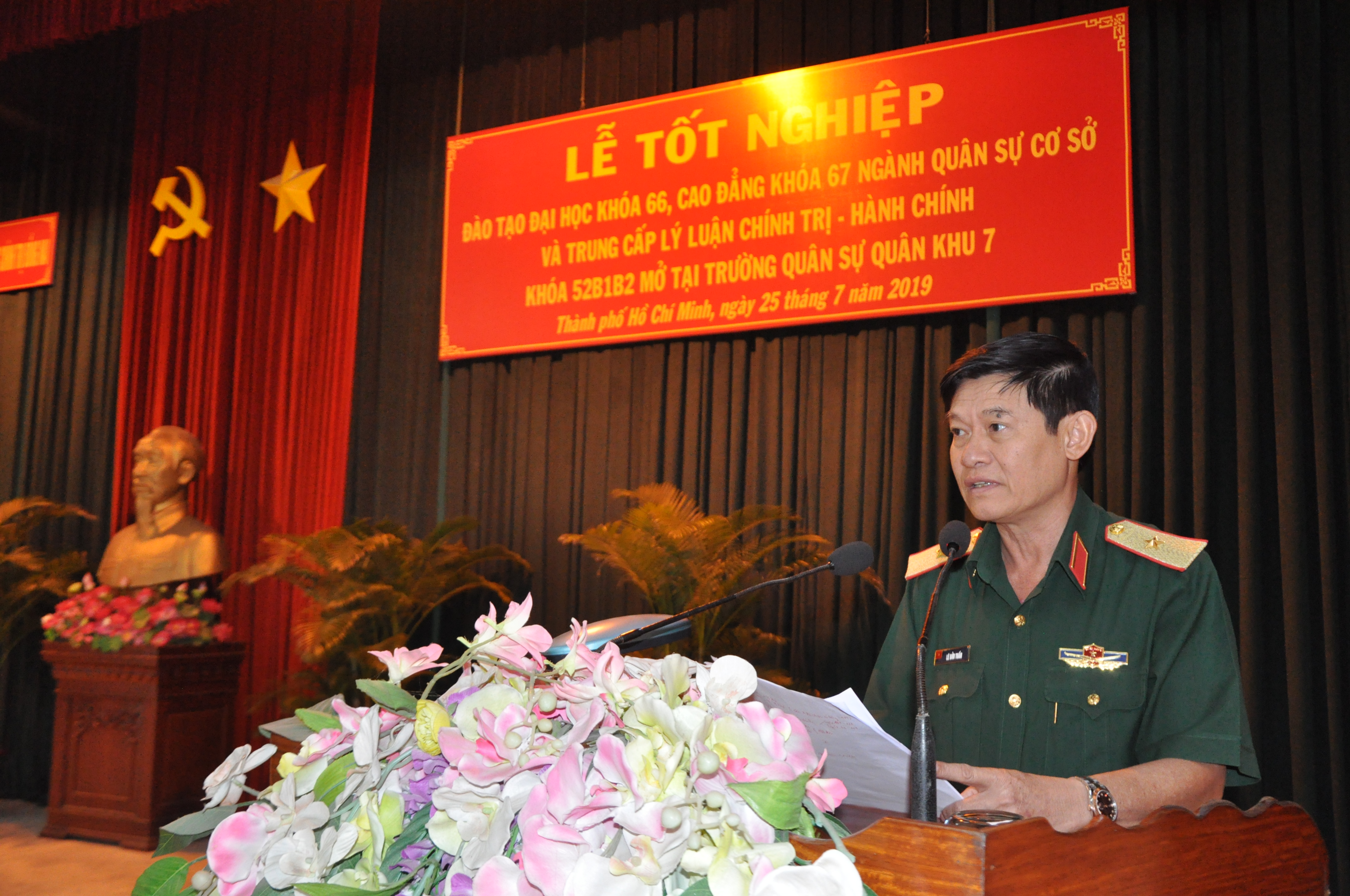 Thiếu tướng Lê Bửu Tuấn, Phó Tư lệnh Tham mưu trưởng Quân khu 7 phát biểu tại lễ tốt nghiệp.