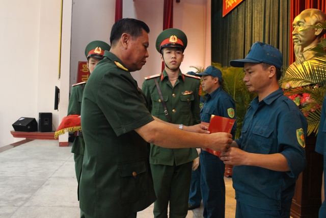 Đại tá Đặng Văn Lẫm - Hiệu trưởng trường Quân sự Quân khu 7 trao bằng tốt nghiệp cho các học viên