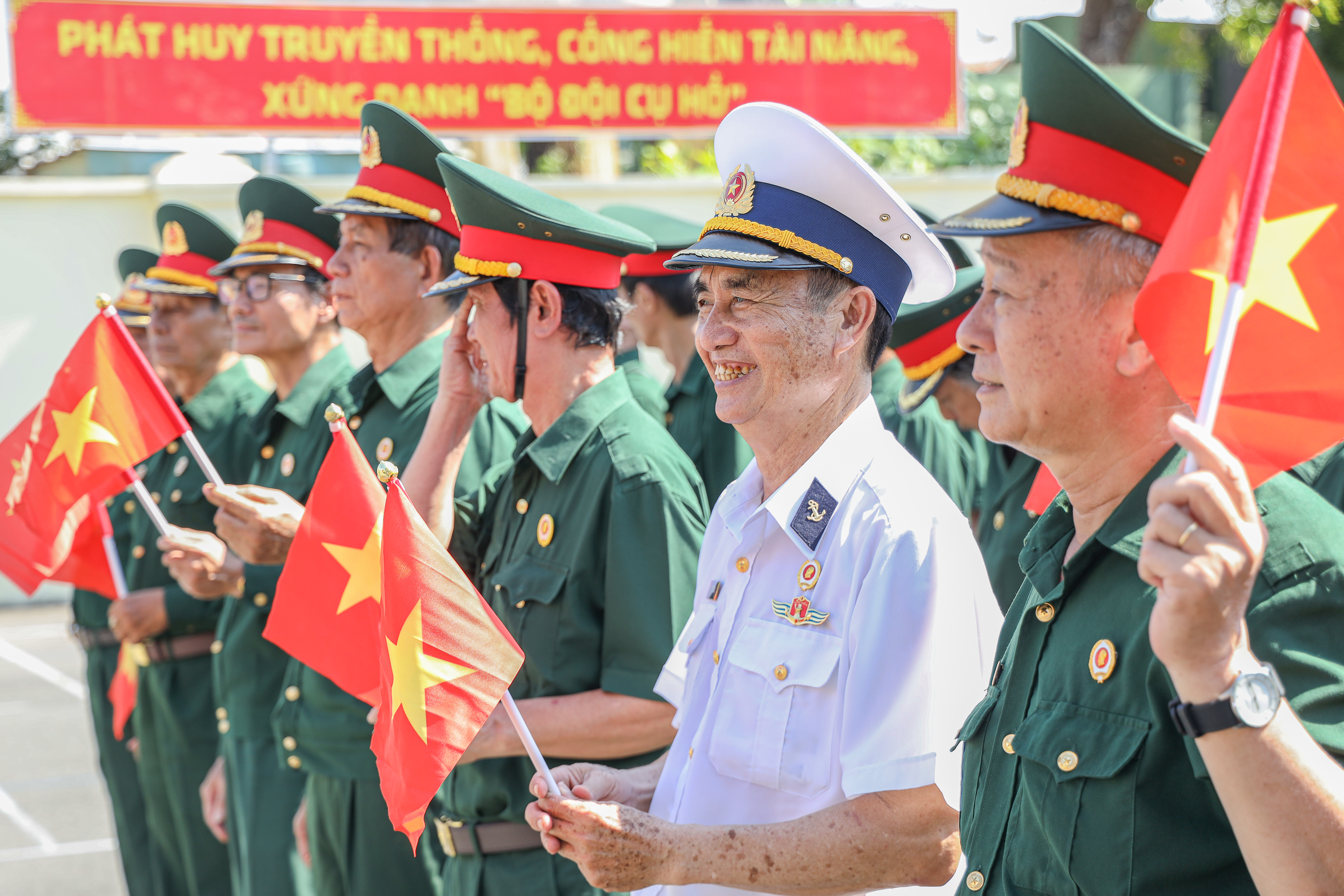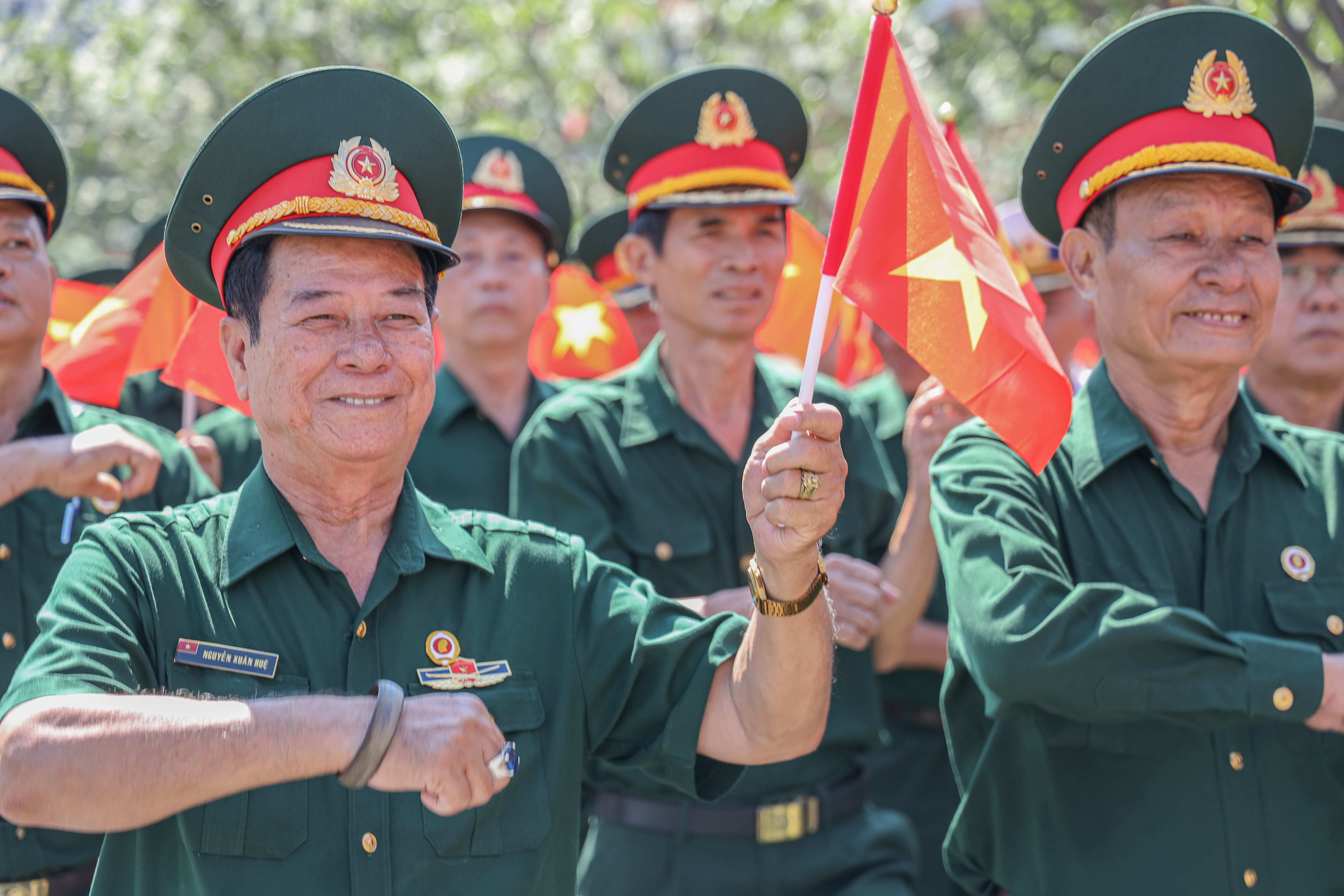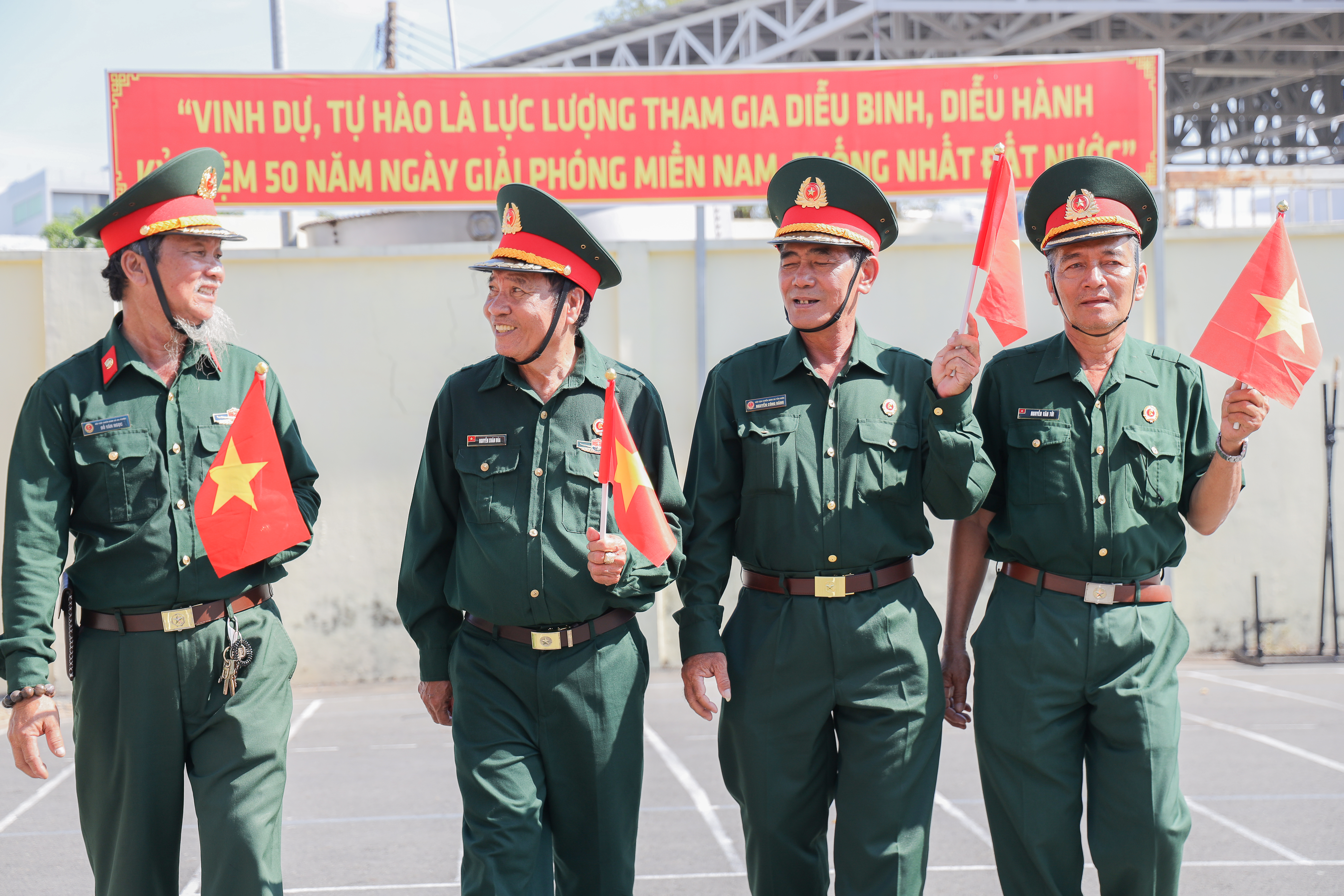 Dù trời nắng gay gắt, huấn luyện vất vả, nhưng trên gương mặt những cựu chiến binh vẫn ánh lên nụ cười rạng rỡ, bởi trong tim họ luôn hừng hực khí thế, hướng về ngày chiến thắng 30/4 đầy tự hào.