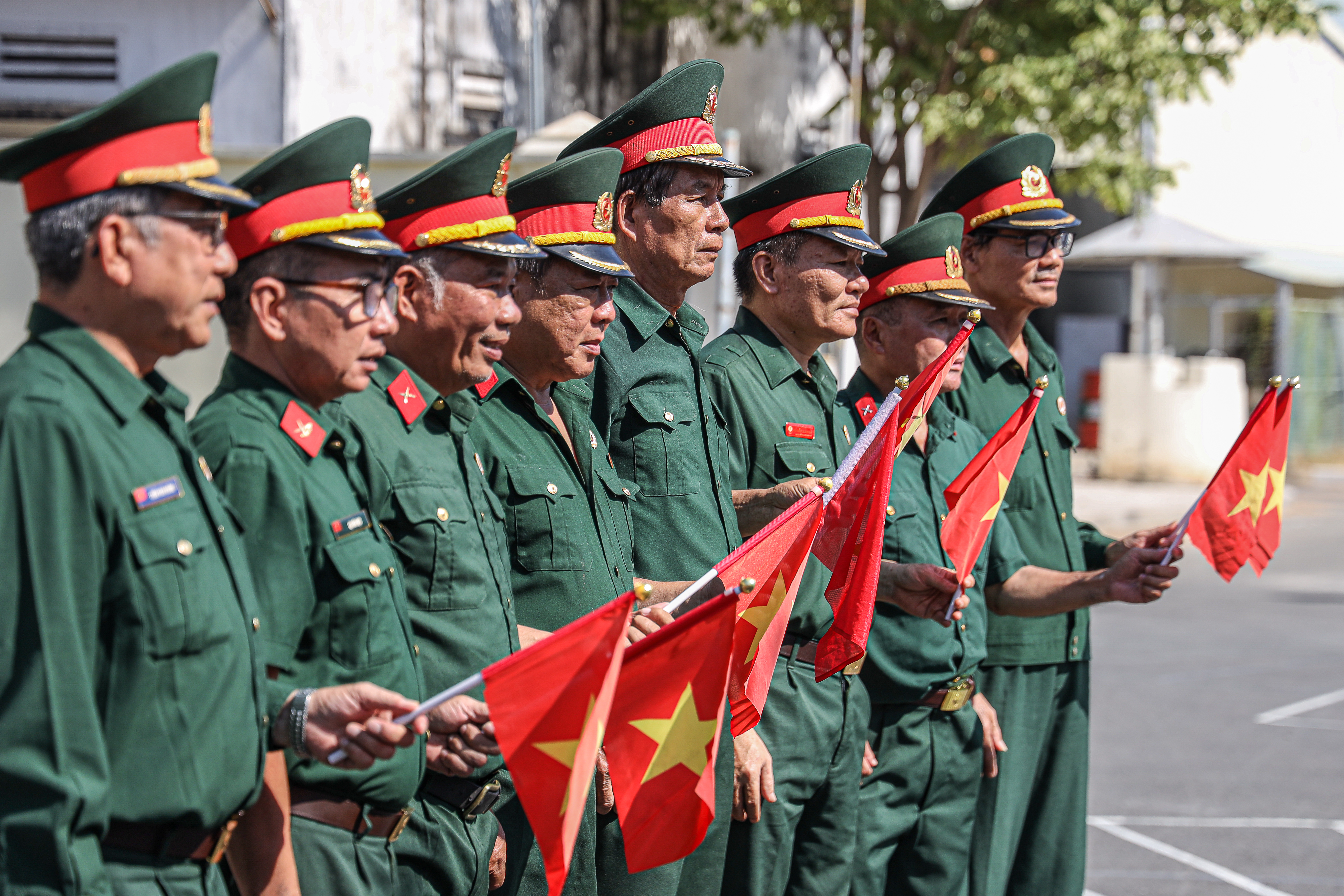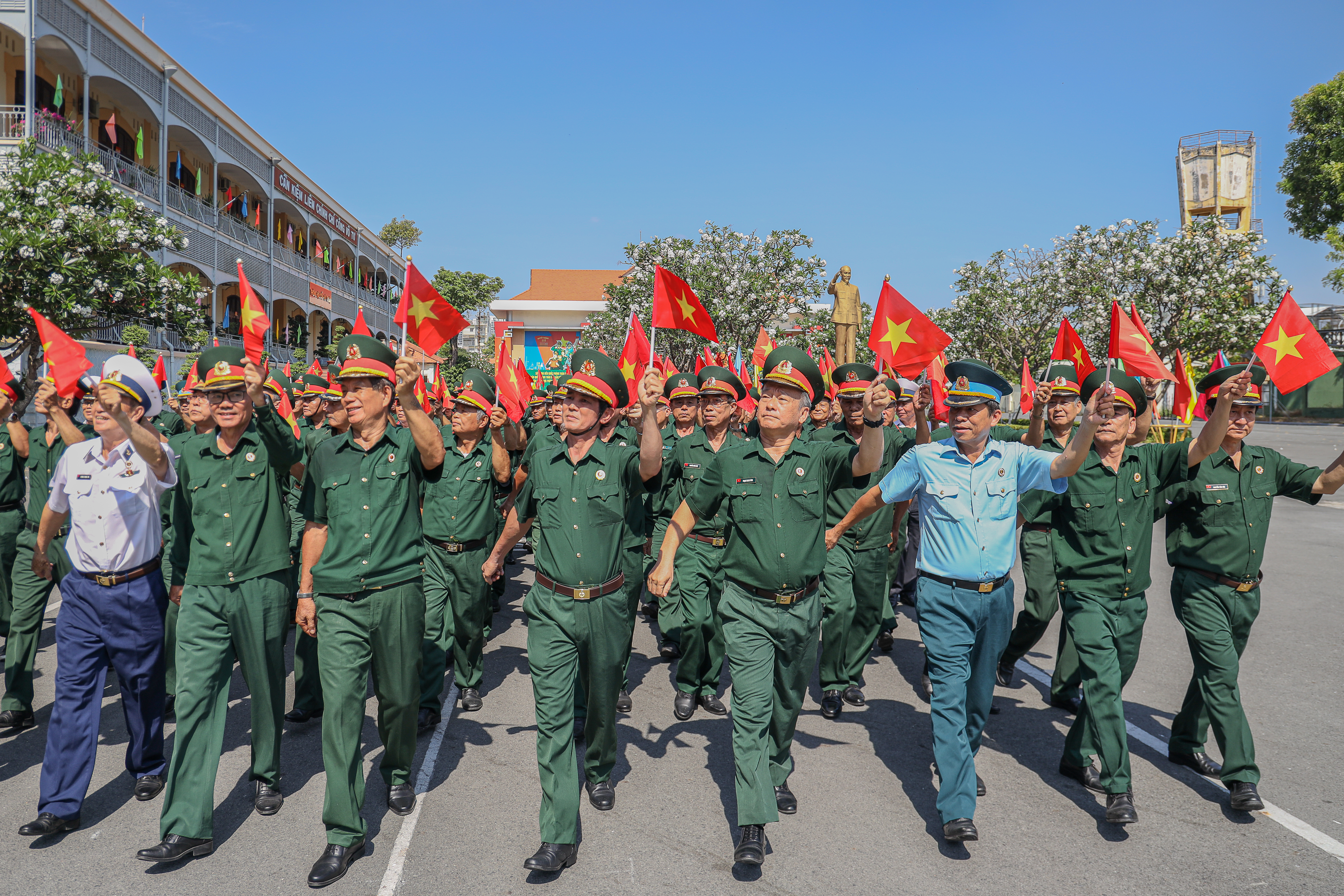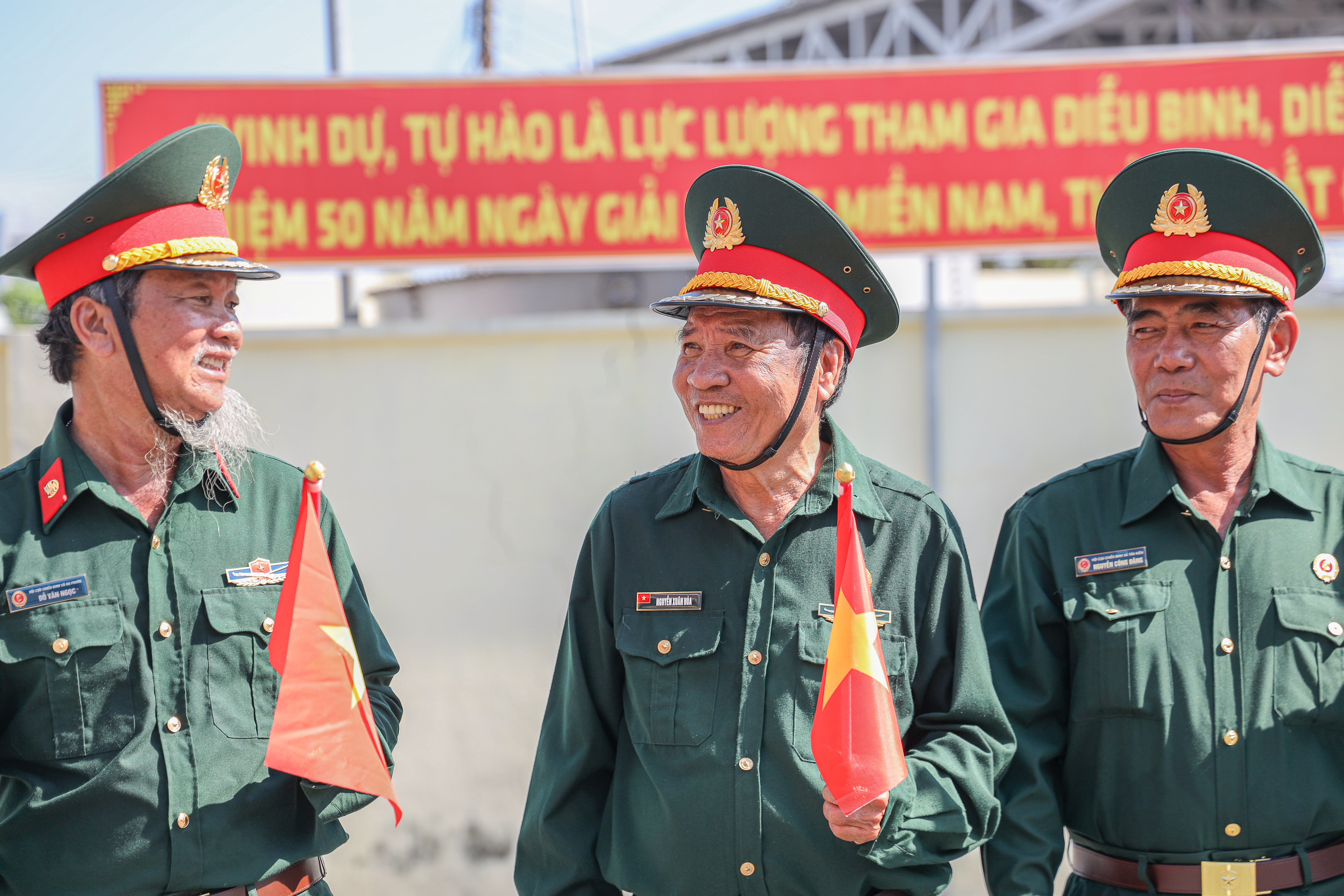 Dù trời nắng gay gắt, huấn luyện vất vả, nhưng trên gương mặt những cựu chiến binh vẫn ánh lên nụ cười rạng rỡ, bởi trong tim họ luôn hừng hực khí thế, hướng về ngày chiến thắng 30/4 đầy tự hào.