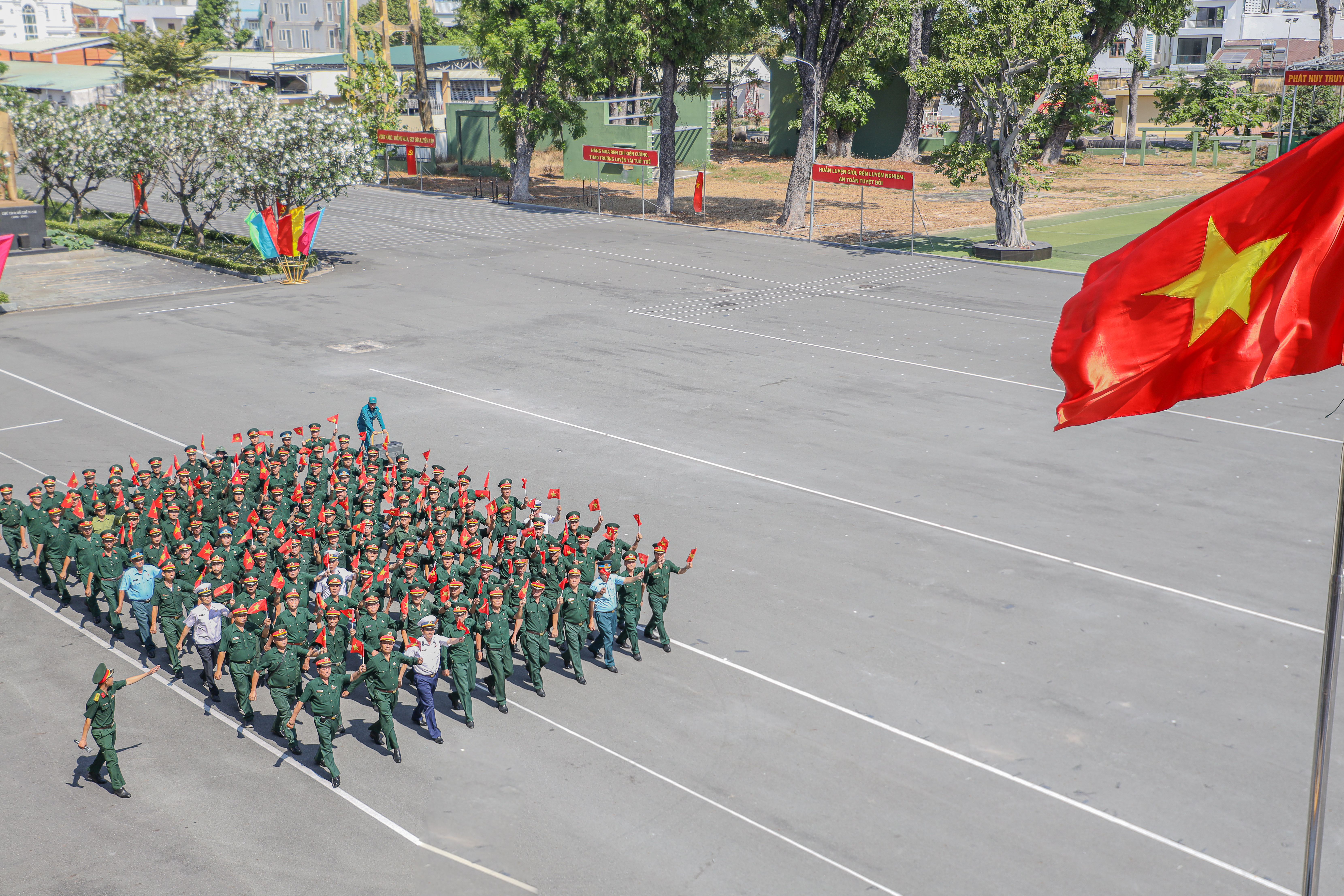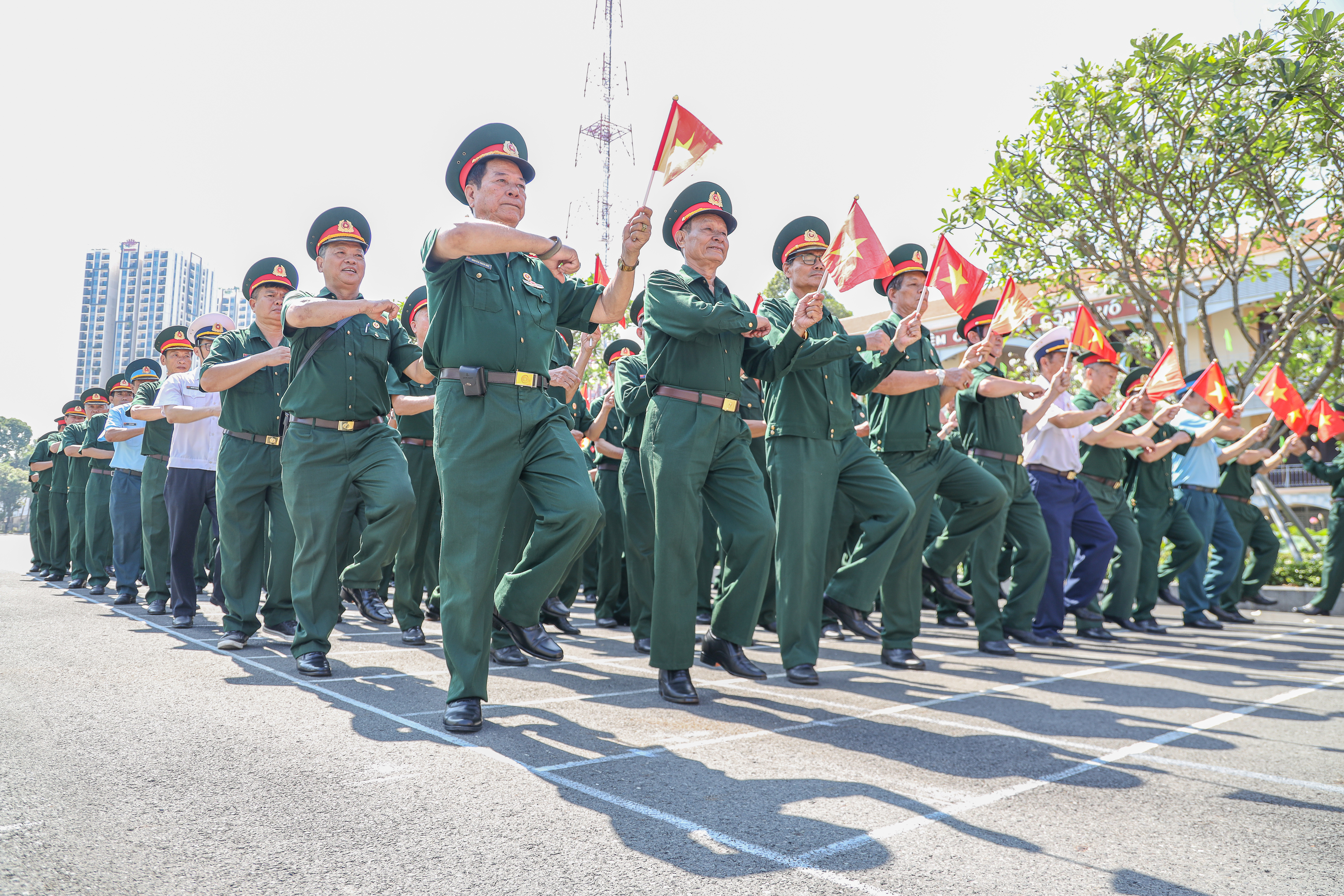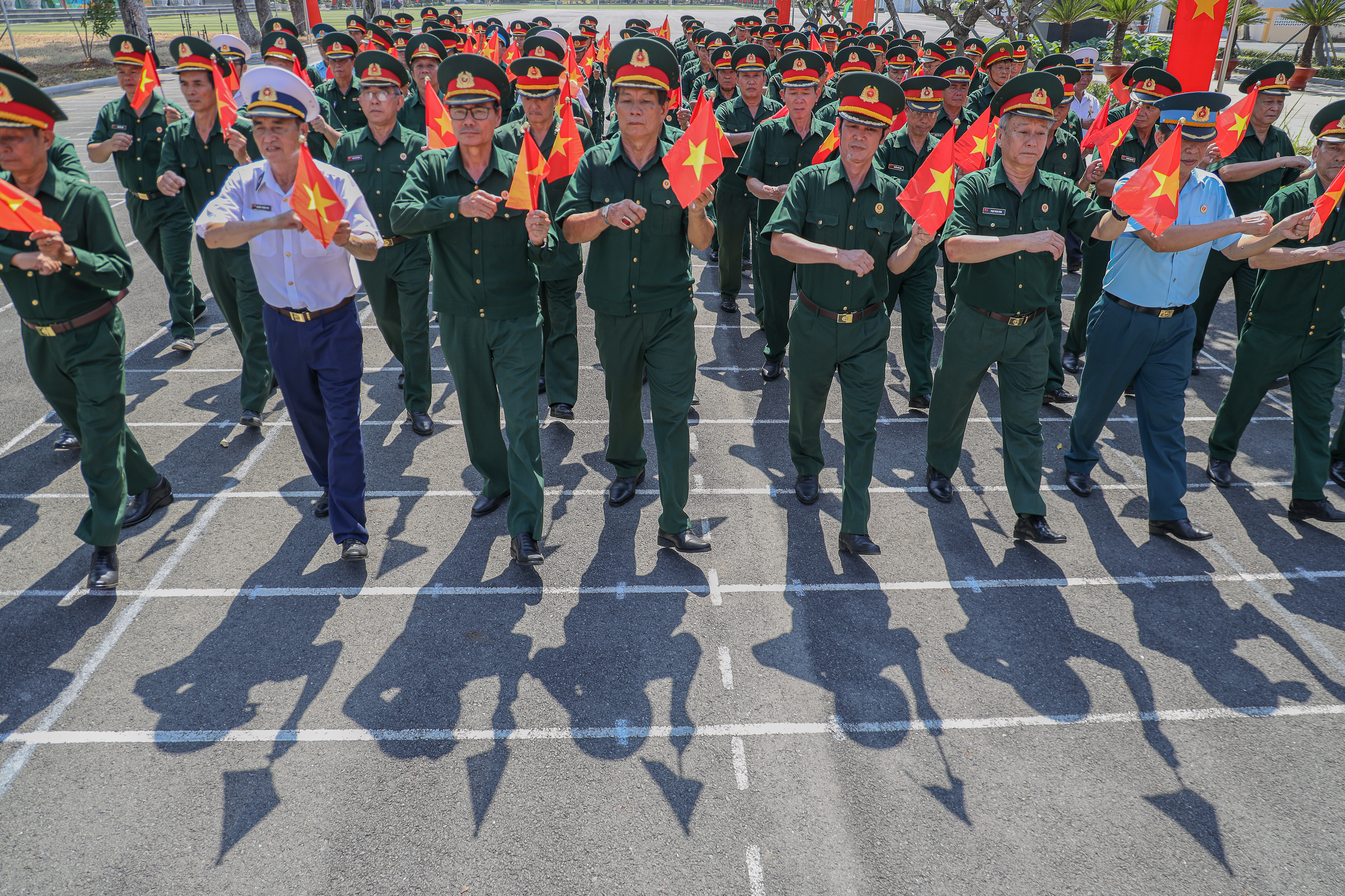 Càng về trưa, cái nắng phương Nam càng gay gắt, hắt xuống sân tập những tia nắng chói chang. Dẫu vậy, mỗi buổi tập kéo dài suốt hai giờ đồng hồ, các cựu chiến binh vẫn kiên trì rèn luyện, từng bước chân, từng động tác đều toát lên ý chí và tinh thần kỷ luật.