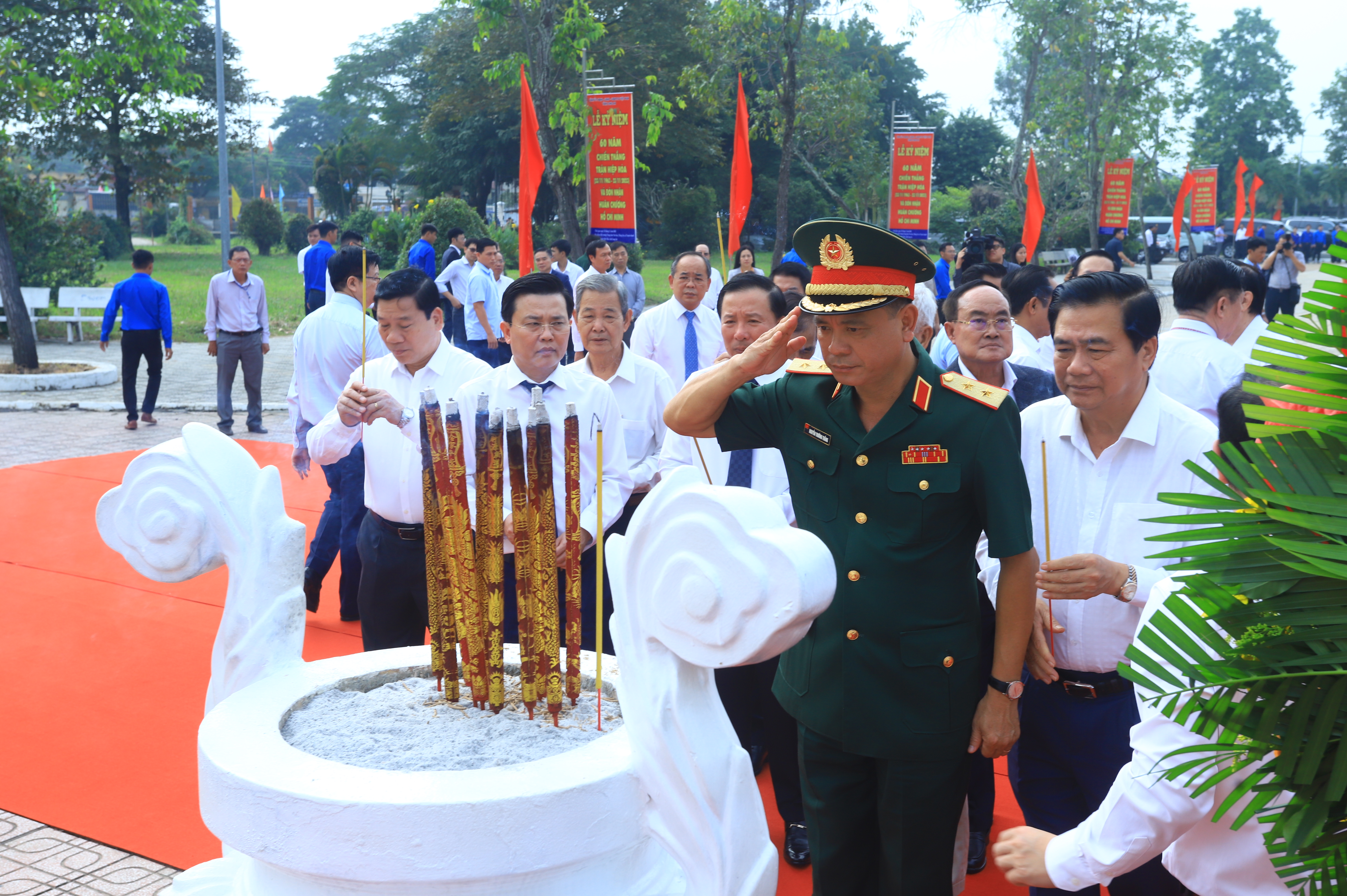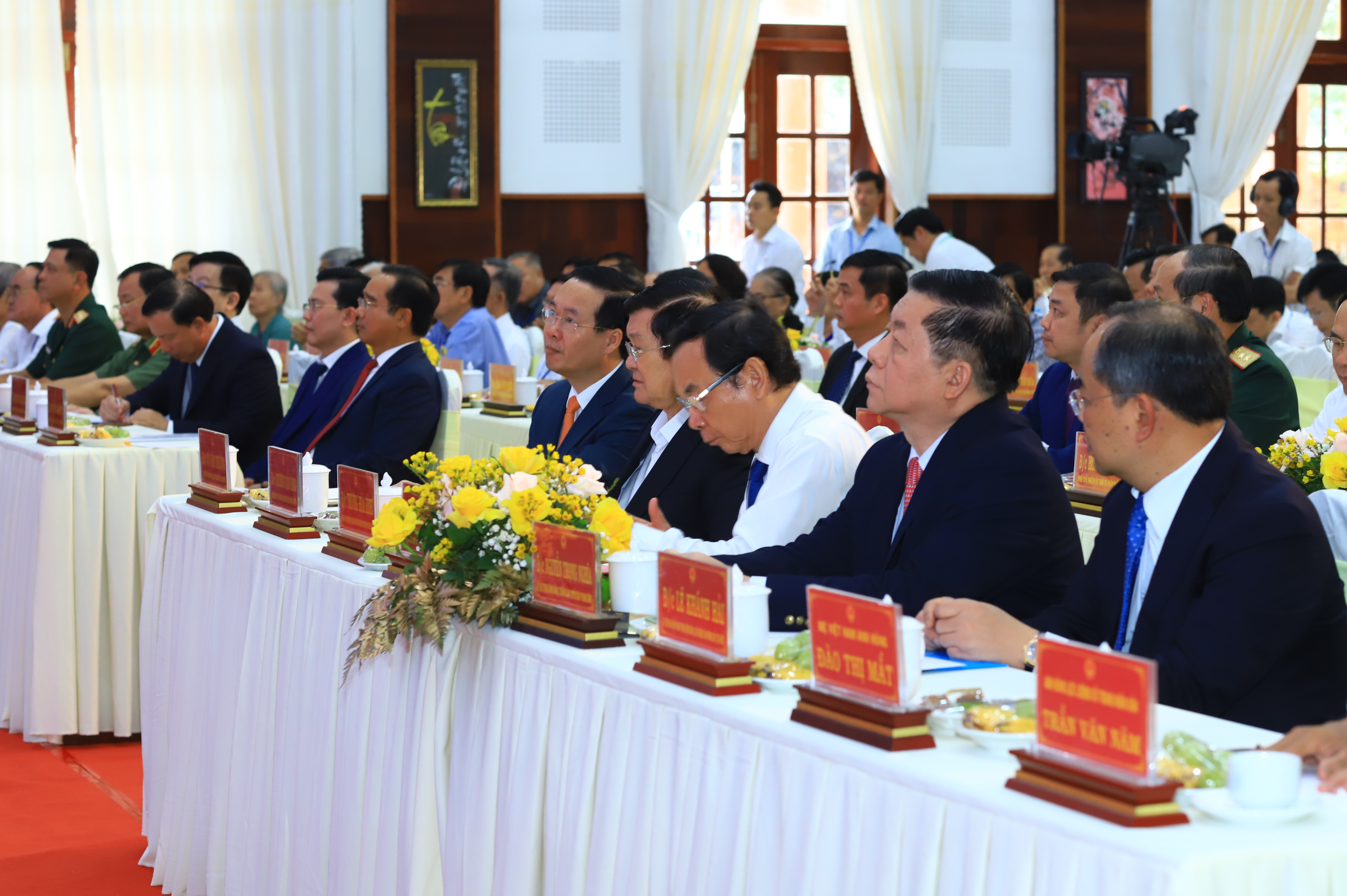 Ðến dự có đồng chí Võ Văn Thưởng, Ủy viên Bộ Chính trị, Chủ tịch nước Cộng hòa xã hội chủ nghĩa Việt Nam; đồng chí Trương Tấn Sang, nguyên Ủy viên Bộ Chính trị, nguyên Chủ tịch nước Cộng hòa xã hội chủ nghĩa Việt Nam; đồng chí Trương Hòa Bình, nguyên Ủy viên Bộ Chính trị, nguyên Phó Thủ tướng Thường trực Chính phủ nước Cộng hòa xã hội chủ nghĩa Việt Nam; đồng chí Nguyễn Trọng Nghĩa, Bí thư Trung ương Đảng, Trưởng Ban Tuyên giáo Trung ương; đồng chí Nguyễn Văn Nên, Uỷ viên Bộ Chính trị, Bí thư Thành ủy Thành phố Hồ Chí Minh; Thượng tướng Trần Đơn, nguyên Ủy viên Trung ương Đảng, nguyên Ủy viên Thường vụ Quân ủy Trung ương, nguyên Thứ trưởng Bộ Quốc phòng; Trung tướng Nguyễn Trường Thắng, Ủy viên Trung ương Đảng, Ủy viên Quân ủy Trung ương, Tư lệnh Quân khu 7; các đồng chí lãnh đạo, nguyên lãnh đạo các bộ, ngành Trung ương; các đồng chí lãnh đạo và nguyên lãnh đạo tỉnh và các Mẹ Việt Nam anh hùng, Anh hùng lực lượng vũ trang Nhân dân, Anh hùng lao động thời kỳ đổi mới.