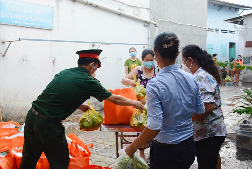 Để chăm lo đời sống cho hộ nghèo, người lao động ở các khu nhà trọ, lực lượng vũ trang (LLVT) TP Thủ Đức đã huy động mọi nguồn lực, phối hợp chặt chẽ với cấp ủy, chính quyền địa phương hỗ trợ vật chất, động viên tinh thần, không để ai bị bỏ lại phía sau.