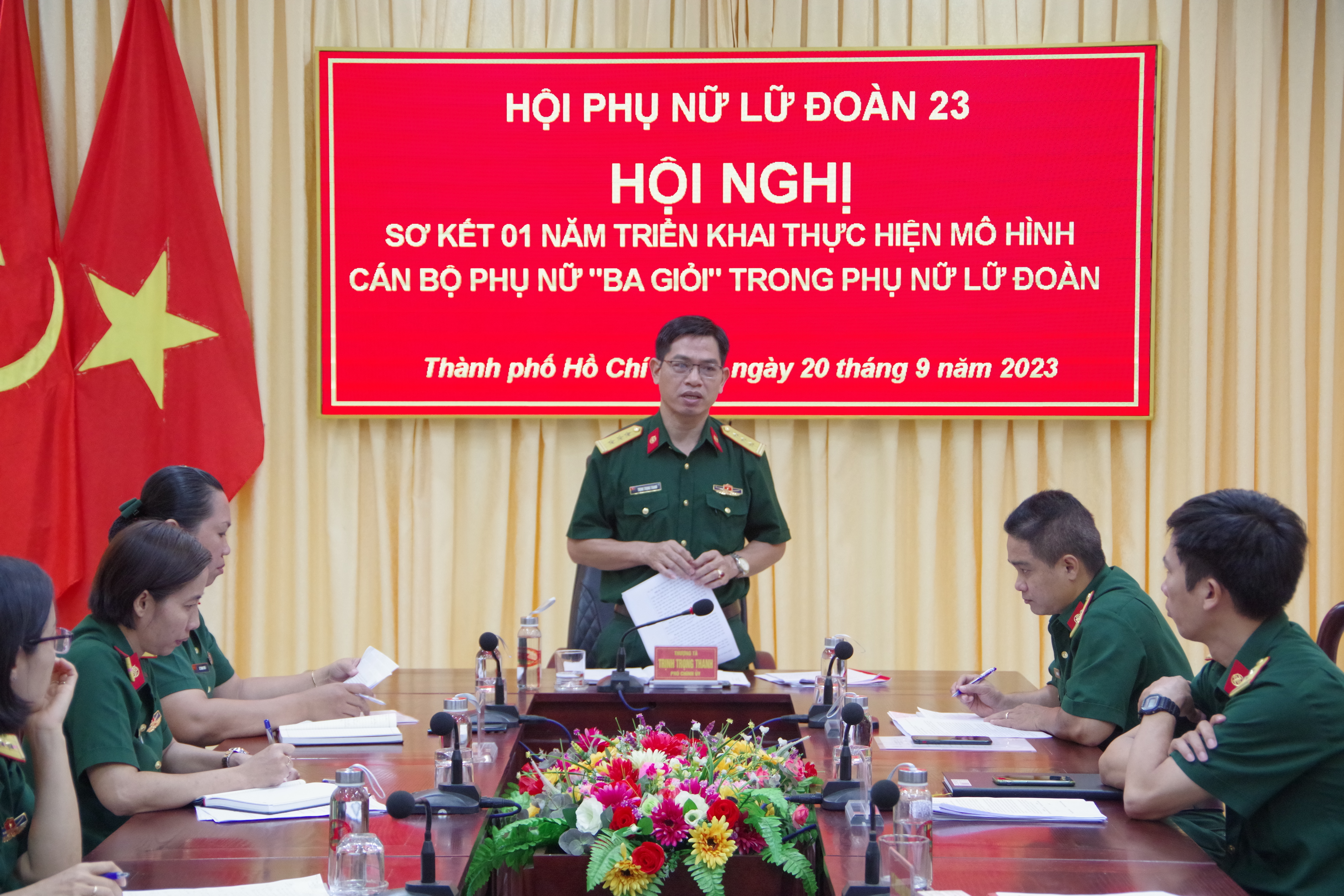 (QK7 Online) - Ngày 20-9, Hội phụ nữ Lữ đoàn 23 tổ chức Hội nghị sơ kết 1 năm triển khai thực hiện Mô hình Cán bộ phụ nữ “Ba giỏi”. Thượng tá Trịnh Trọng Thanh, Phó Chính uỷ Lữ đoàn dự hội nghị.