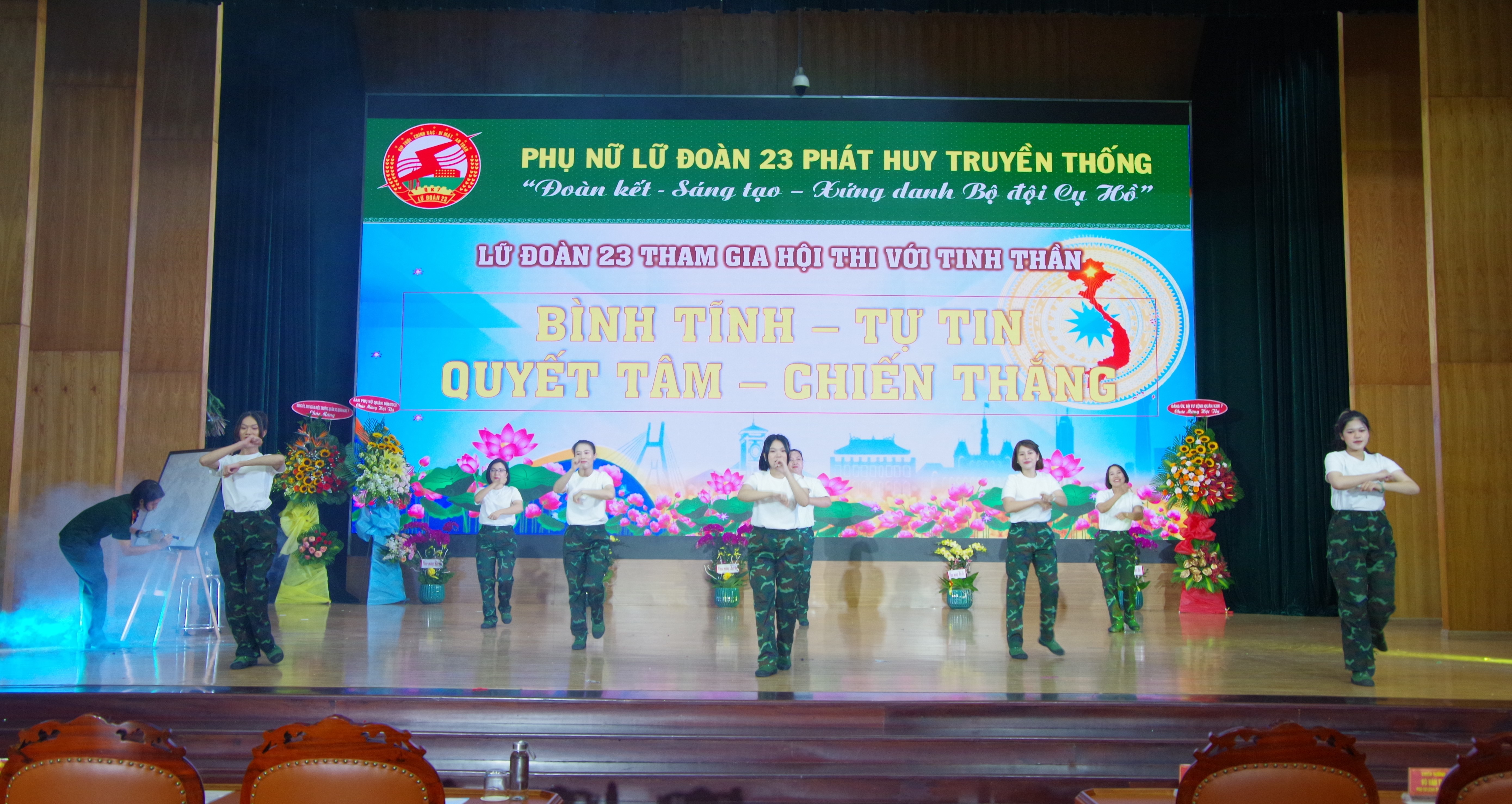 Phần thi năng khiếu của cán bộ Hội Phụ nữ Lữ đoàn tại Hội thi "Cán bộ Hội Phụ nữ giỏi năm 2023".