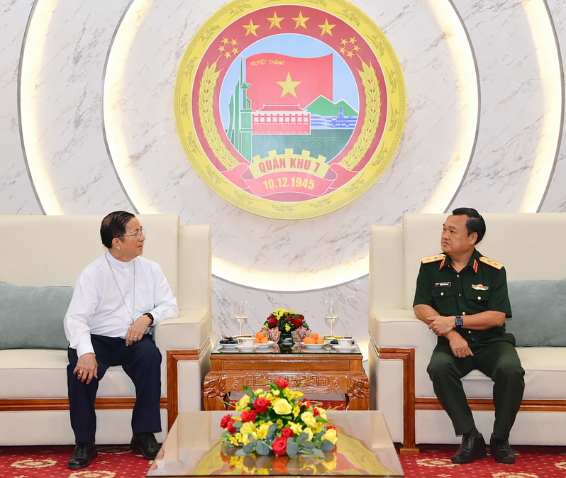 Tòa Giám mục Phú Cường do Giám mục Giuse Nguyễn Tấn Tước làm trưởng đoàn đến thăm, chúc Tết Đảng ủy, Bộ Tư lệnh Quân khu 7.