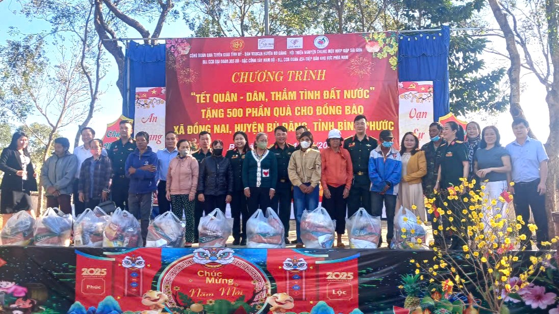 (QK7 Online) - Ngày 19/1, Công đoàn Ban Tuyên giáo Tỉnh ủy Bình Phước, Ban Vận động quần chúng liên ngành huyện Bù Đăng; Đảng uỷ, HĐND, UBND, UBMTTQ xã Đồng Nai tổ chức chương trình “Tết quân dân, thắm tình đất nước” tại xã Đồng Nai, huyện Bù Đăng, tỉnh Bình Phước.