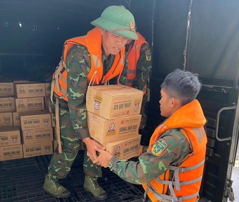 Vận chuyển lương khô đến hỗ trợ người dân.