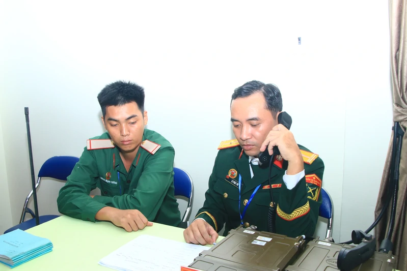 Bộ phận tổng đài trực thông tin bảo đảm an ninh, an toàn cho buổi lễ.