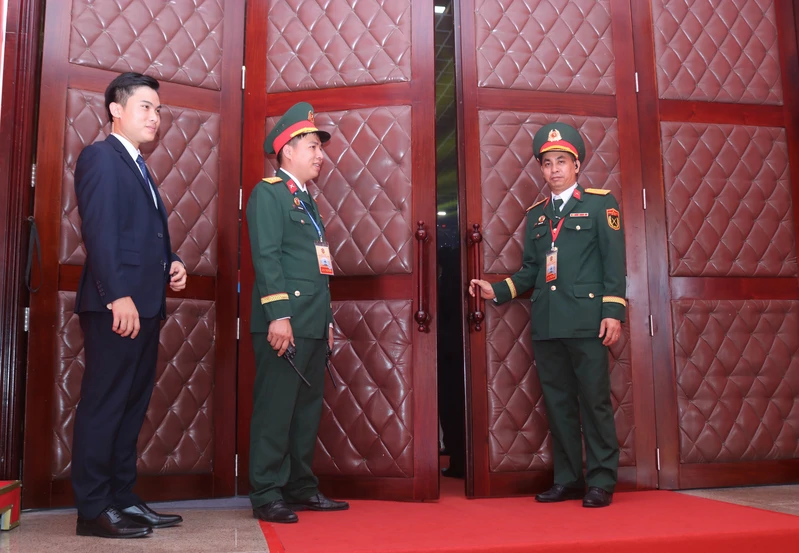 Lực lượng bảo đảm an ninh làm việc nghiêm túc, chặt chẽ.