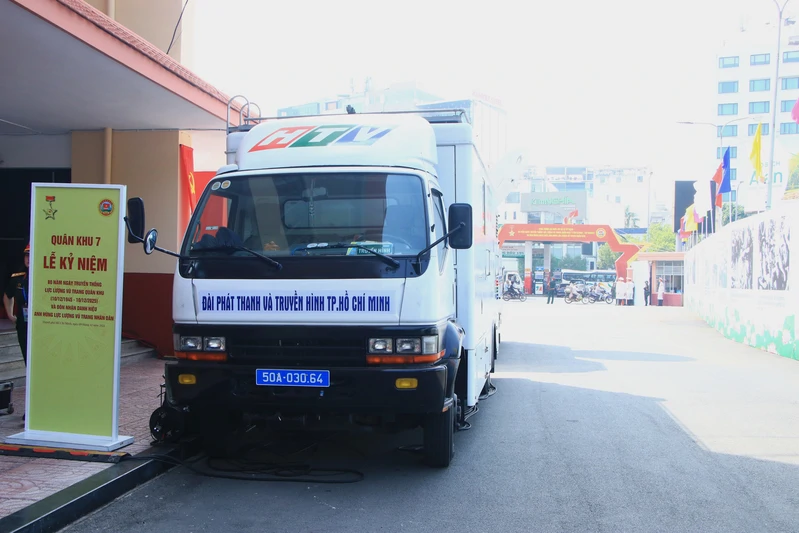 Hệ thống xe màu của Đài PT-TH TP.HCM thực hiện nhiệm vụ truyền hình trực tiếp buổi lễ.