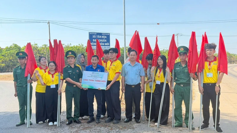 Công trình “Đường cờ Tổ quốc” được cán bộ, chiến sĩ Đồn Biên phòng Tống Lê Chân và Hội Sinh viên Trường Đại học Kinh tế TP Hồ Chí Minh thực hiện tại xã Tân Hòa.