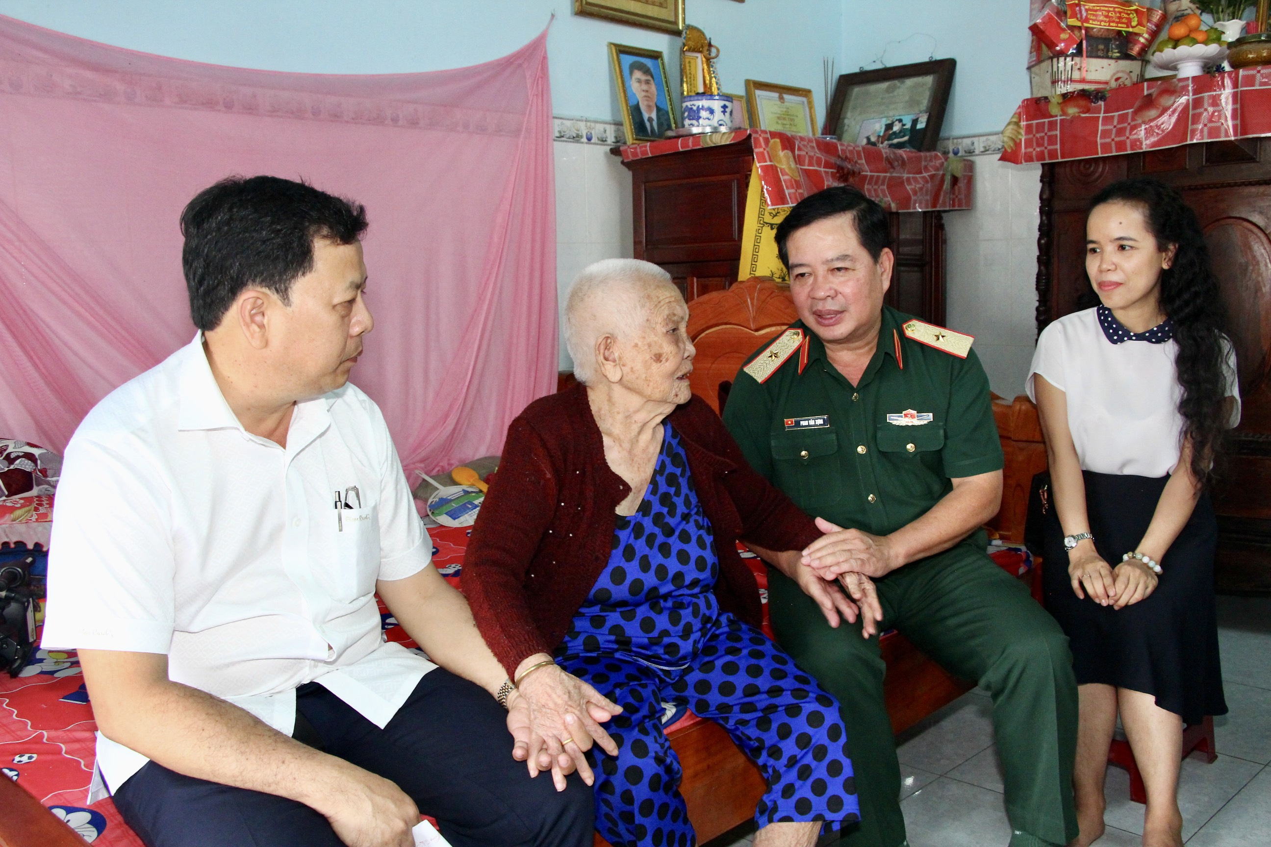 Thiếu tướng Phan Văn Xựng thăm, tặng quà Mẹ Việt Nam Anh hùng.