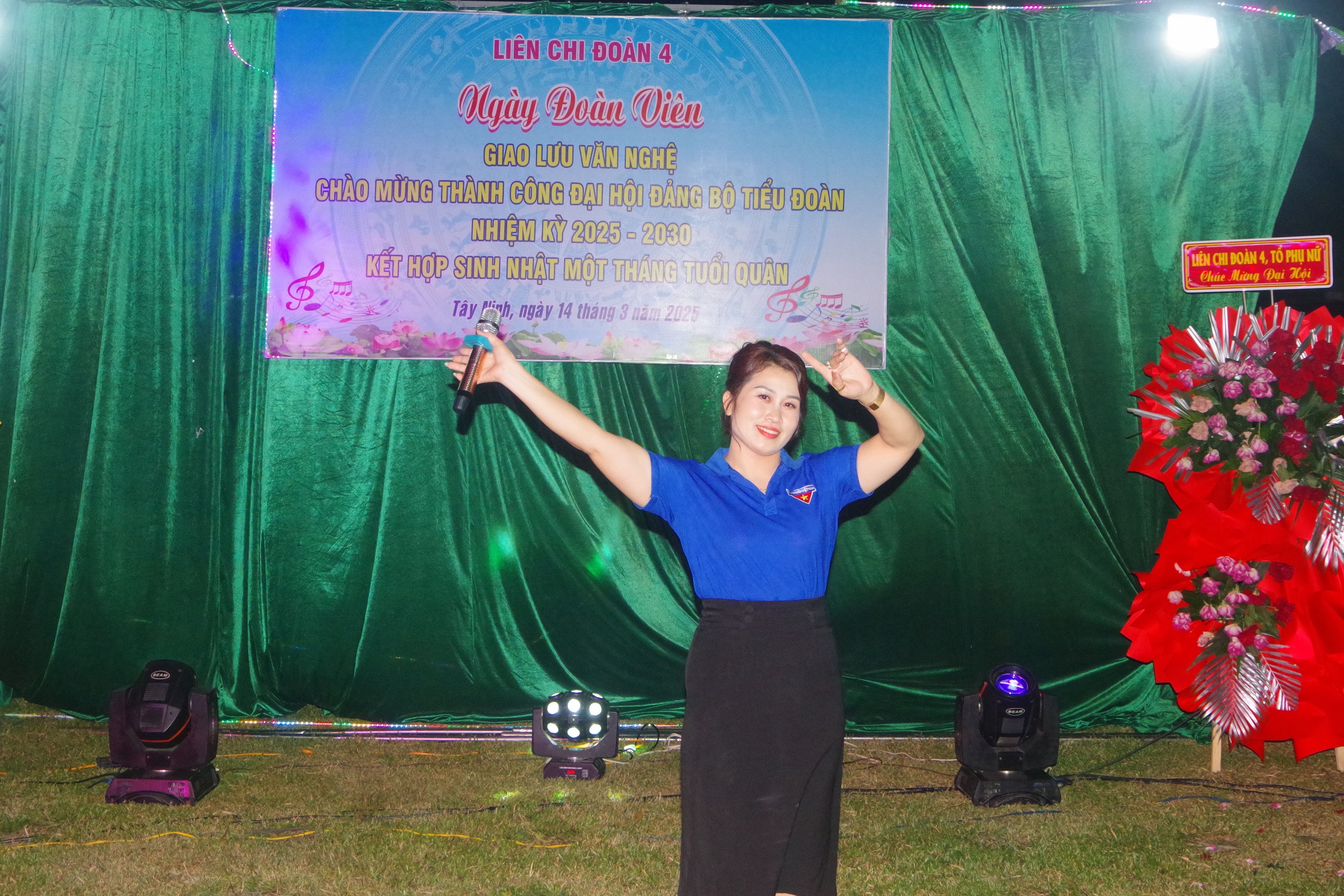 Tiết mục giao lưu văn nghệ của các bạn đoàn viên thanh niên đơn vị kết nghĩa trong buổi sinh nhật tập thể.